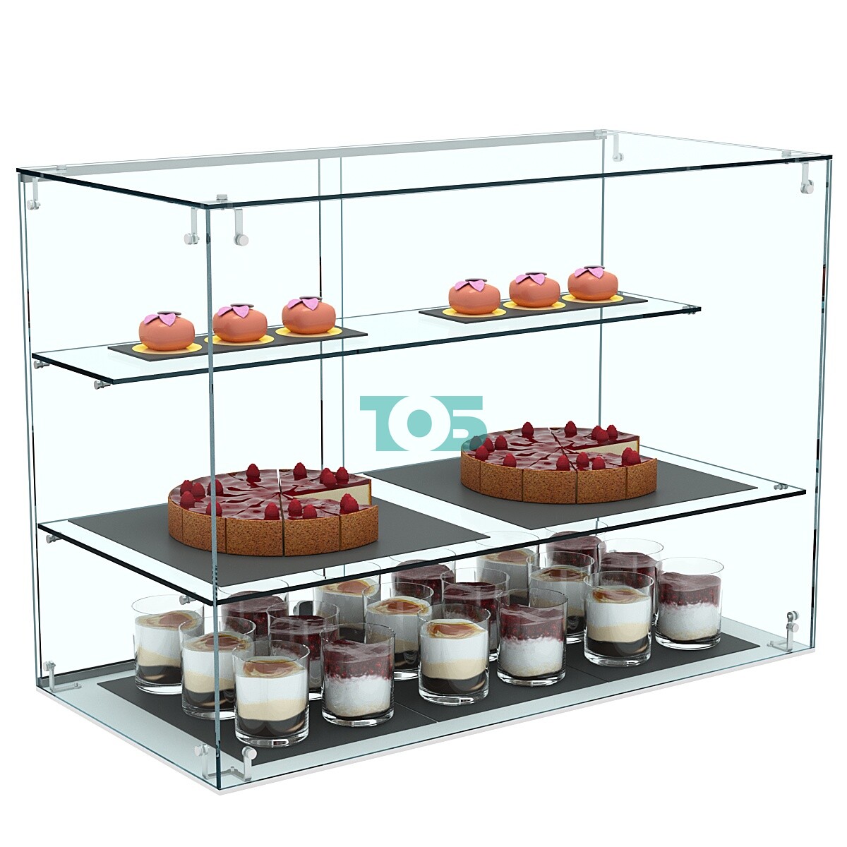 Витрина из стекла с двумя полками №2-900 — это современная и практичная модель, созданная специально для демонстрации выпечки и кондитерских изделий. Стильная и удобная конструкция витрины предоставляет идеальные условия для показа широкого ассортимента продукции, одновременно обеспечивая легкость доступа и удобство хранения.