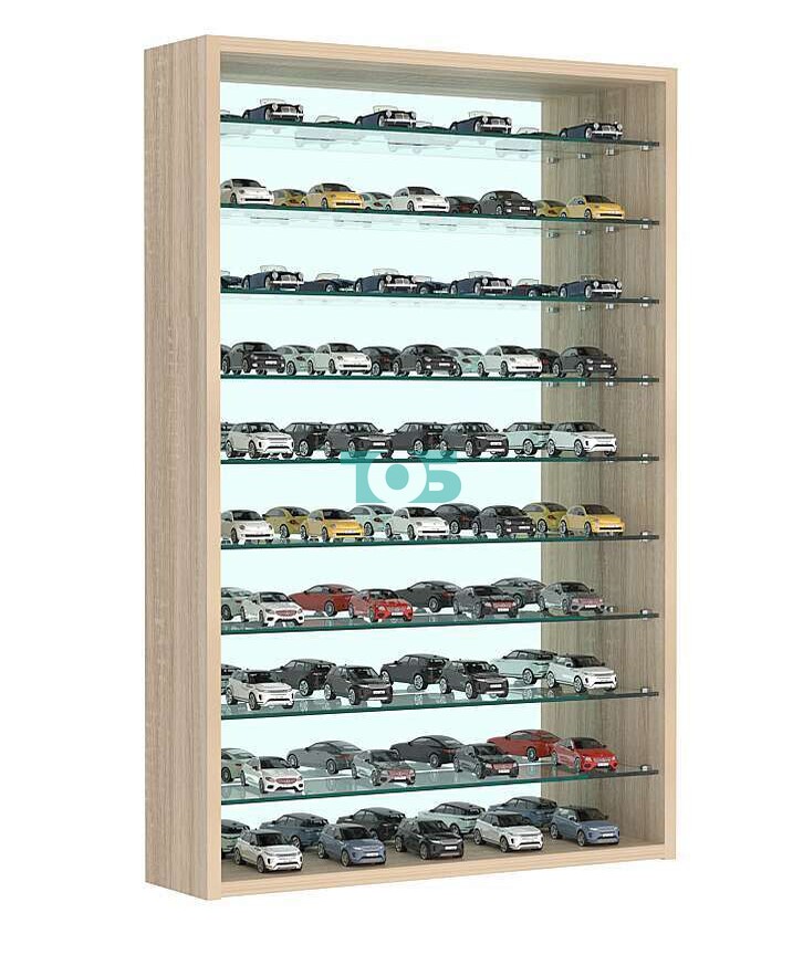 Настенная витрина №2-6Г – это стильное и функциональное решение для демонстрации и хранения множества предметов. Девять стеклянных полок обеспечивают большое количество мест для размещения различных декоративных элементов, книг или сувениров. Зеркальная задняя стенка придаёт витрине дополнительный объём и глубину, делая её идеальным выбором для помещений, где требуется максимальное использование вертикального пространства.