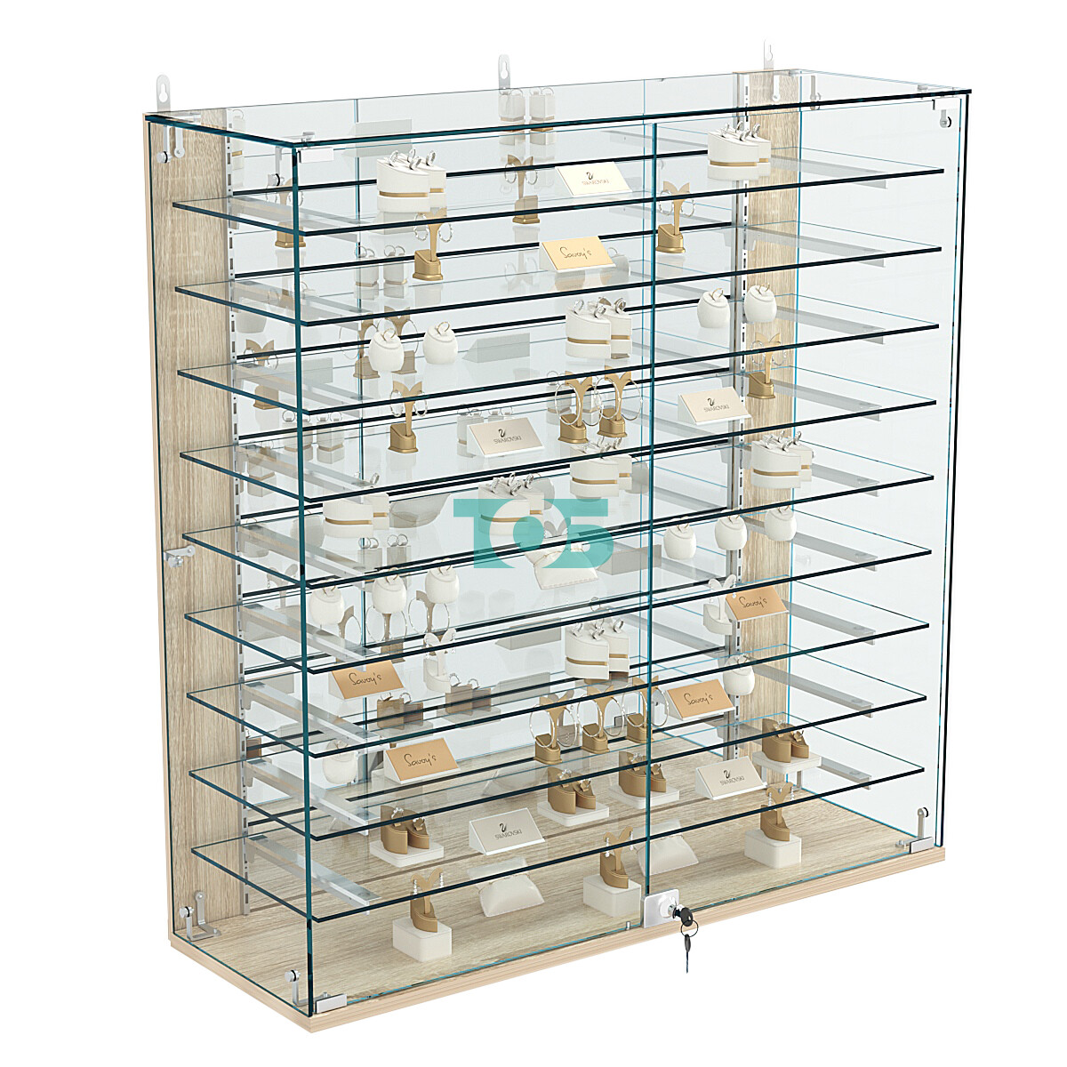 Торговая витрина с 10-ю наклонными стеклянными полками 300x600 мм серии SLANT-10 №5-2 (З/C - ЗЕРКАЛО)