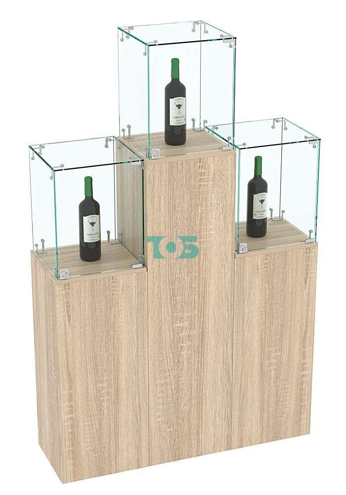 Верх: прозрачный, оснащённый стеклянной дверью с замком, что позволяет видеть товар со всех сторон и обеспечивает его безопасность.