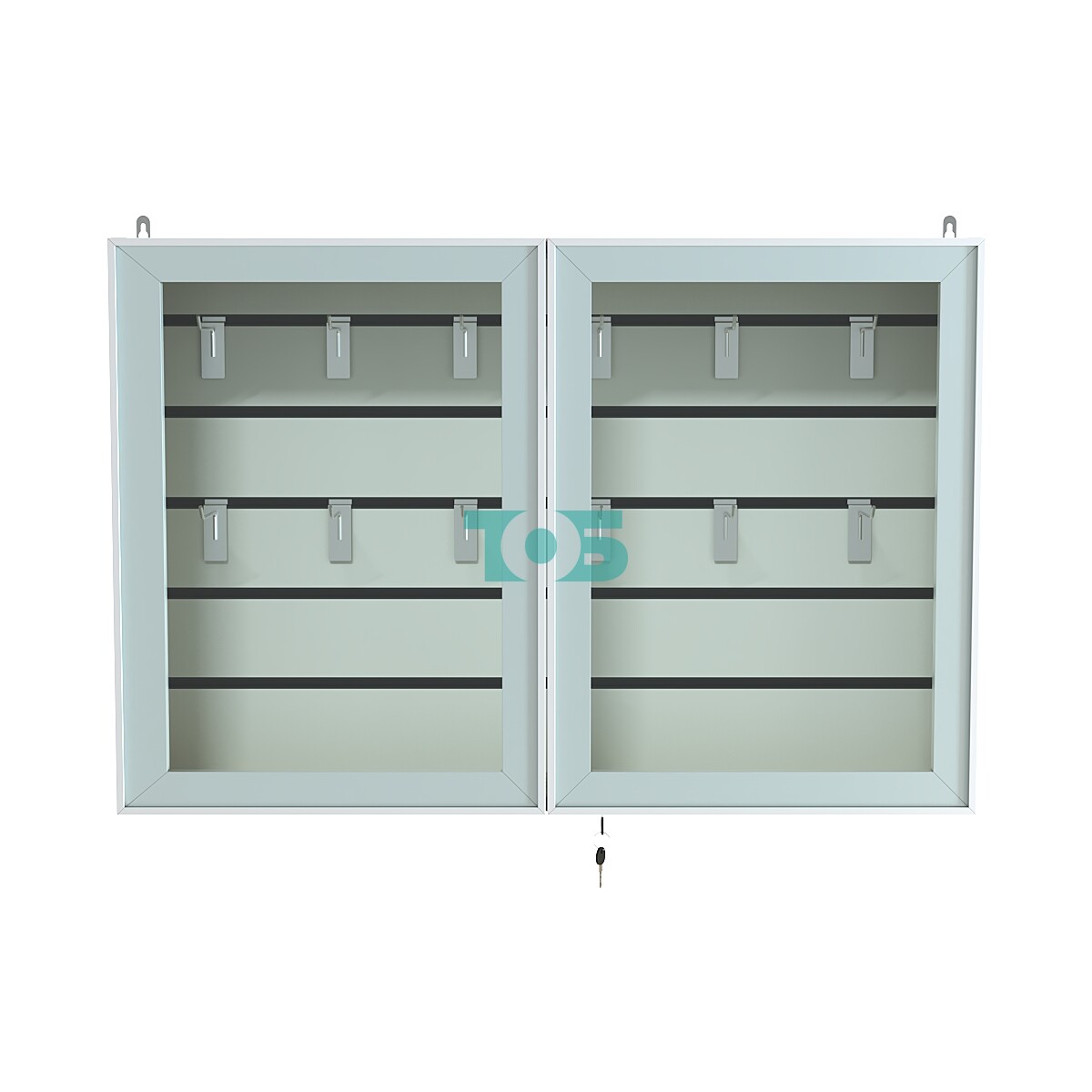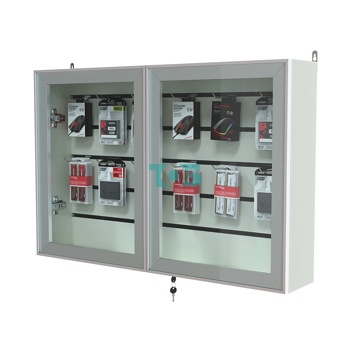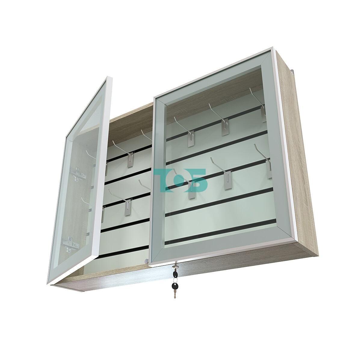 Задняя стенка — эконом-панель позволяет легко изменять конфигурацию внутренних элементов витрины, добавляя необходимые аксессуары.