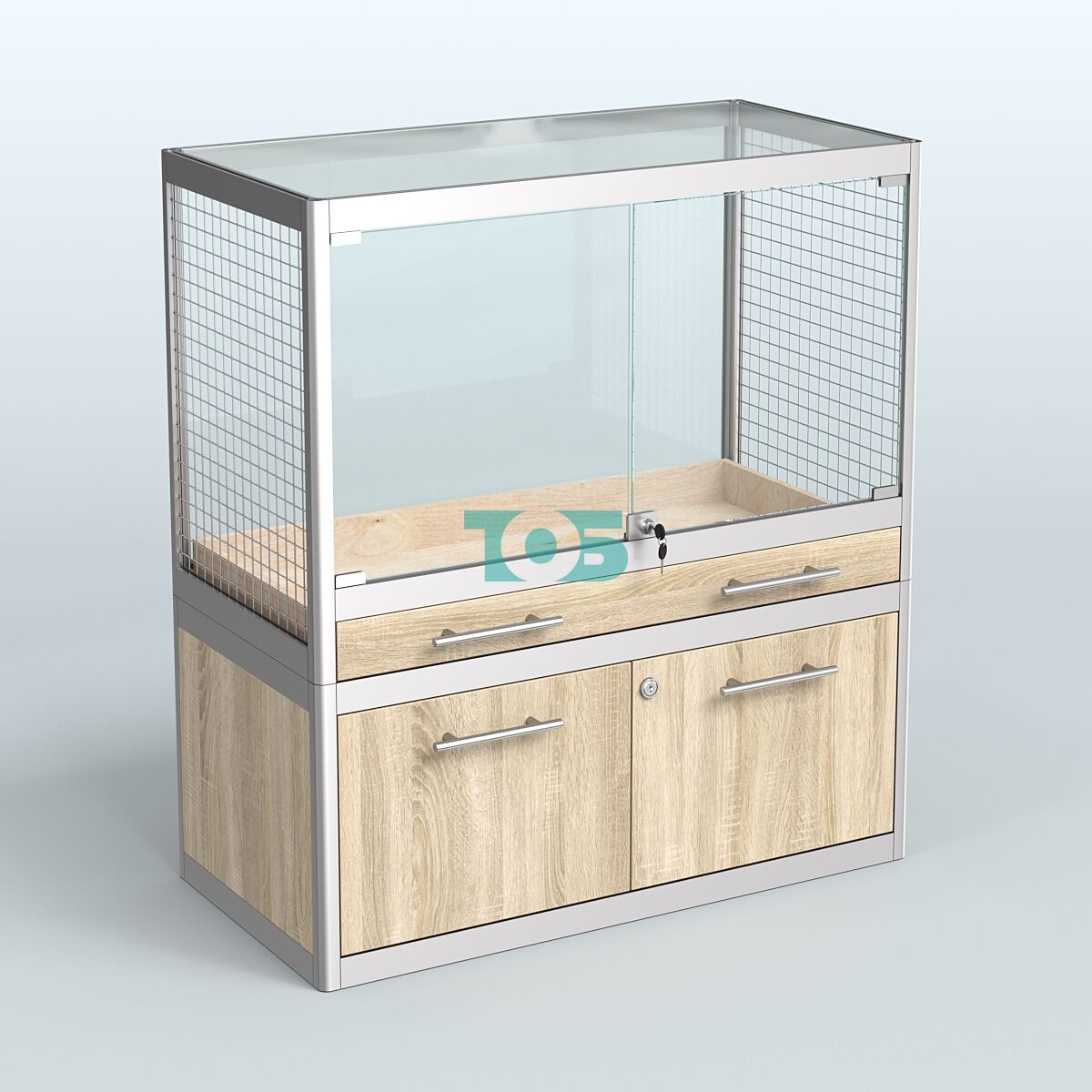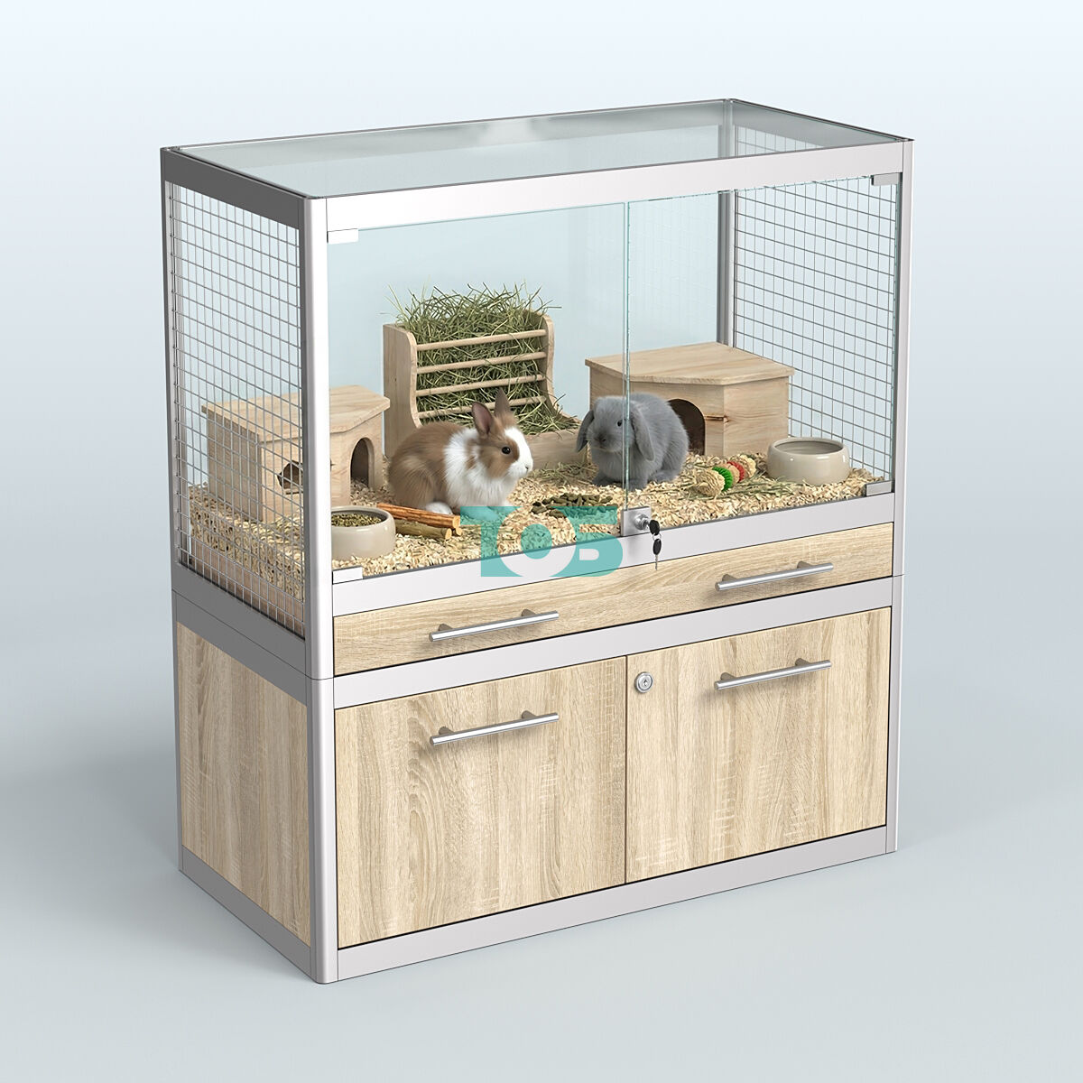 - специализированная витрина в Зоо магазин предназначена для продажи средних млекопитающих таких как: хорьков, куниц и соболей. Торцы витрины укомплектованы сеткой. В каждом отсеке внешние стеклянные дверки с замком и одним большим выдвижным ящиком для сбора опилок и помета;