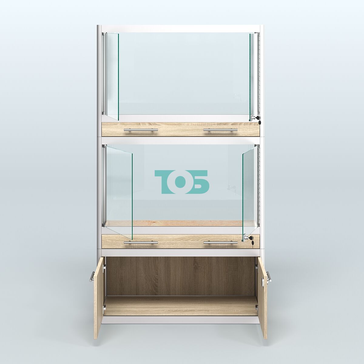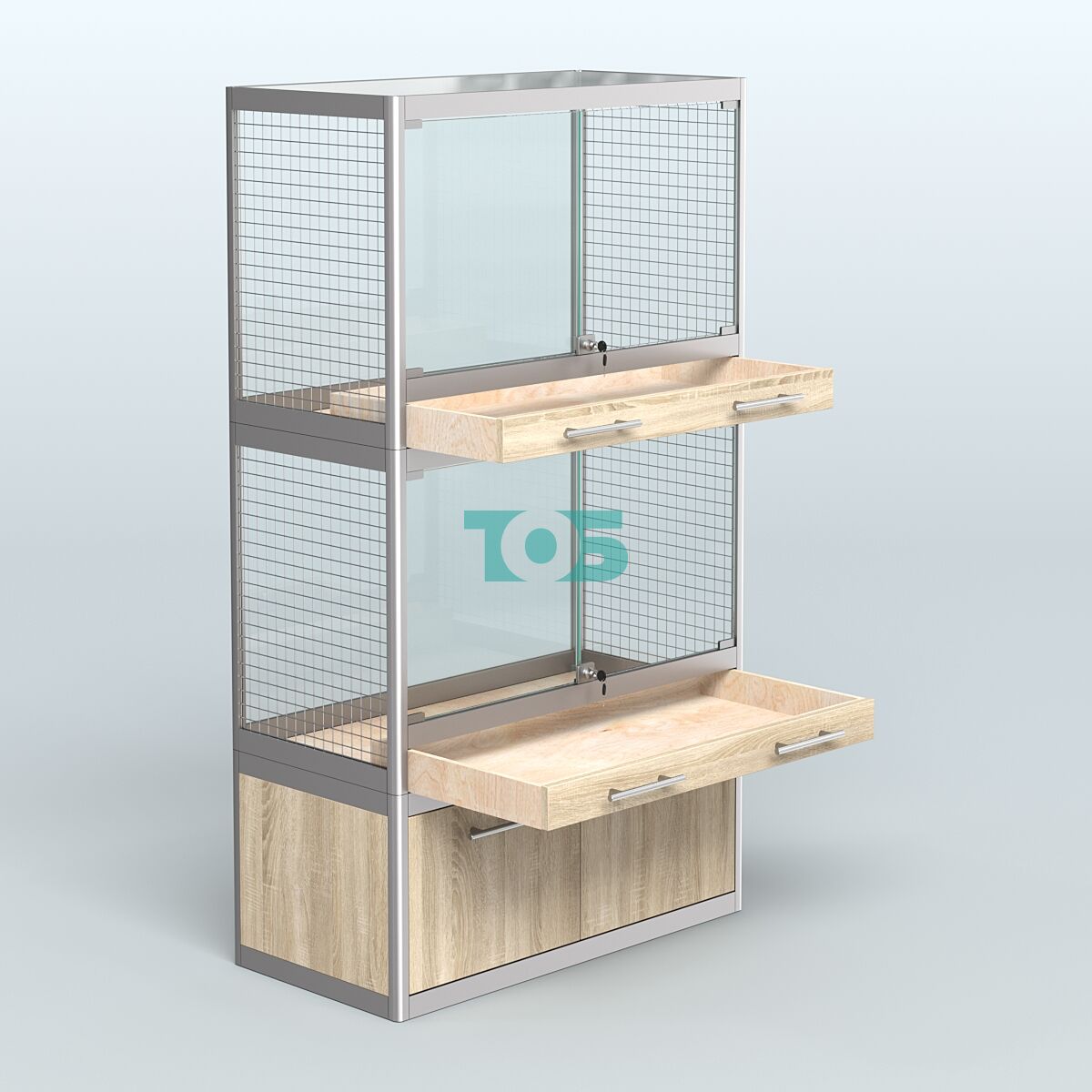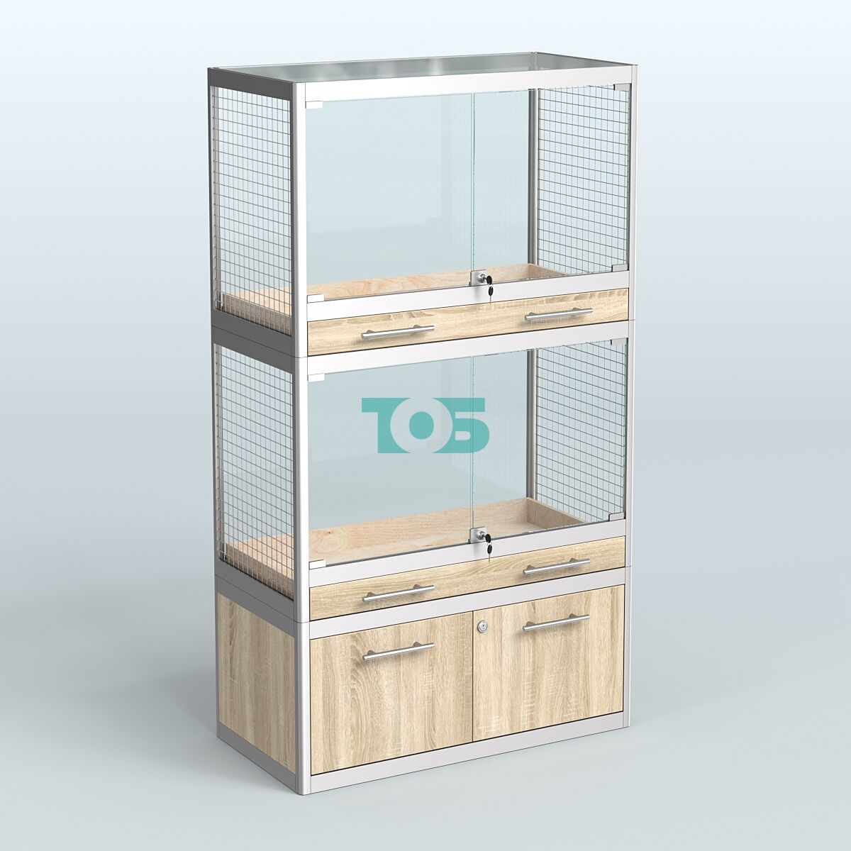 - специализированная витрина в Зоо магазин предназначена для продажи средних млекопитающих таких как: хорьков, куниц и соболей. Торцы витрины укомплектованы сеткой. В каждом отсеке внешние стеклянные дверки с замком и одним большим выдвижным ящиком для сбора опилок и помета;