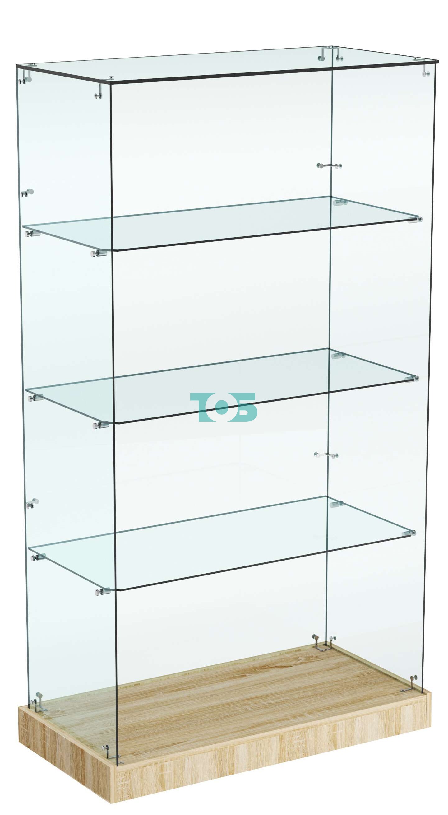 Удобство использования: три стеклянные полки позволяют рационально организовать демонстрацию товаров.
