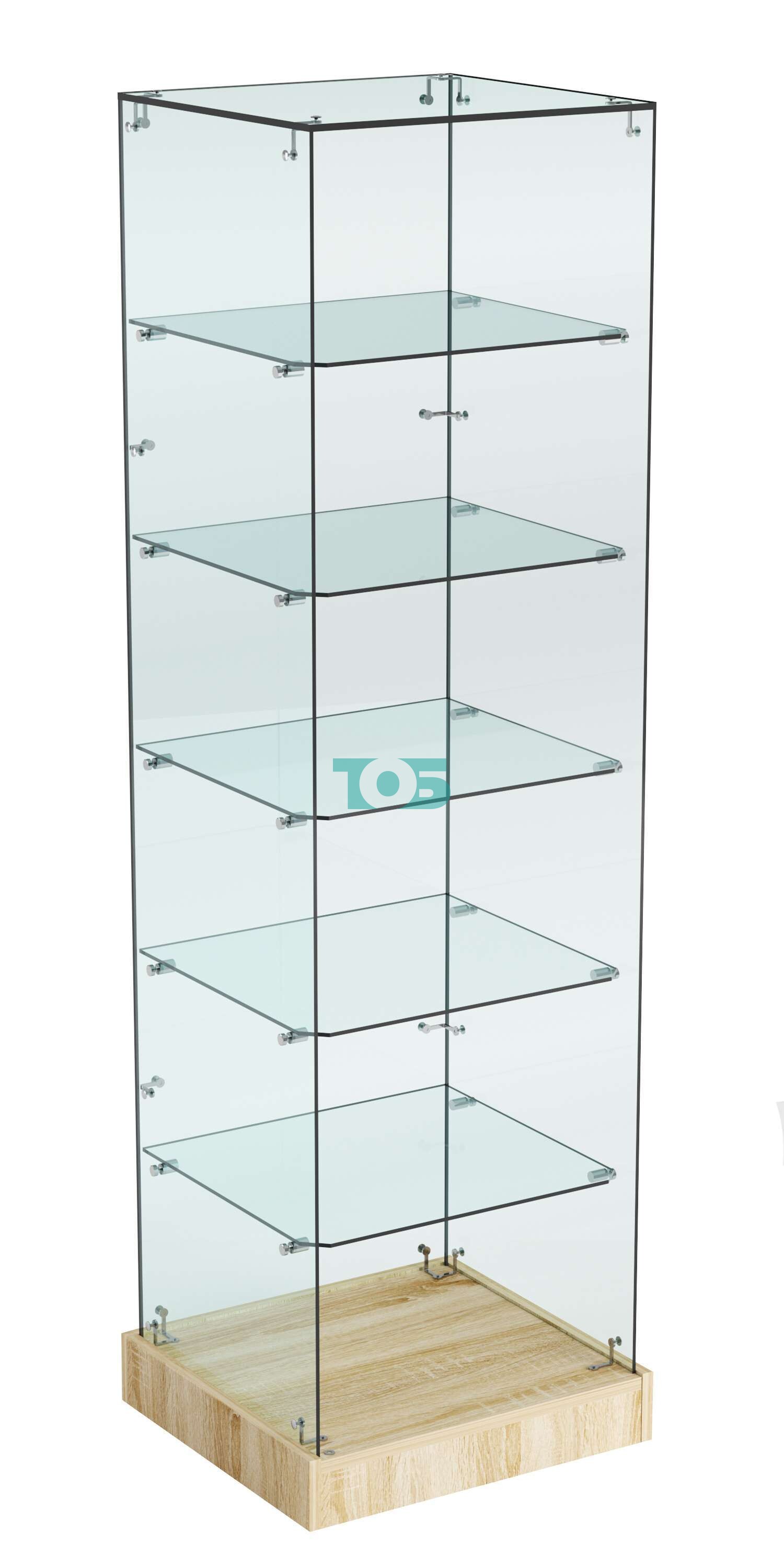 Многофункциональность: пять стеклянных полок позволяют разместить широкий ассортимент товаров. Это делает витрину подходящей для различных категорий продукции, что особенно полезно в магазинах с разнообразным ассортиментом.