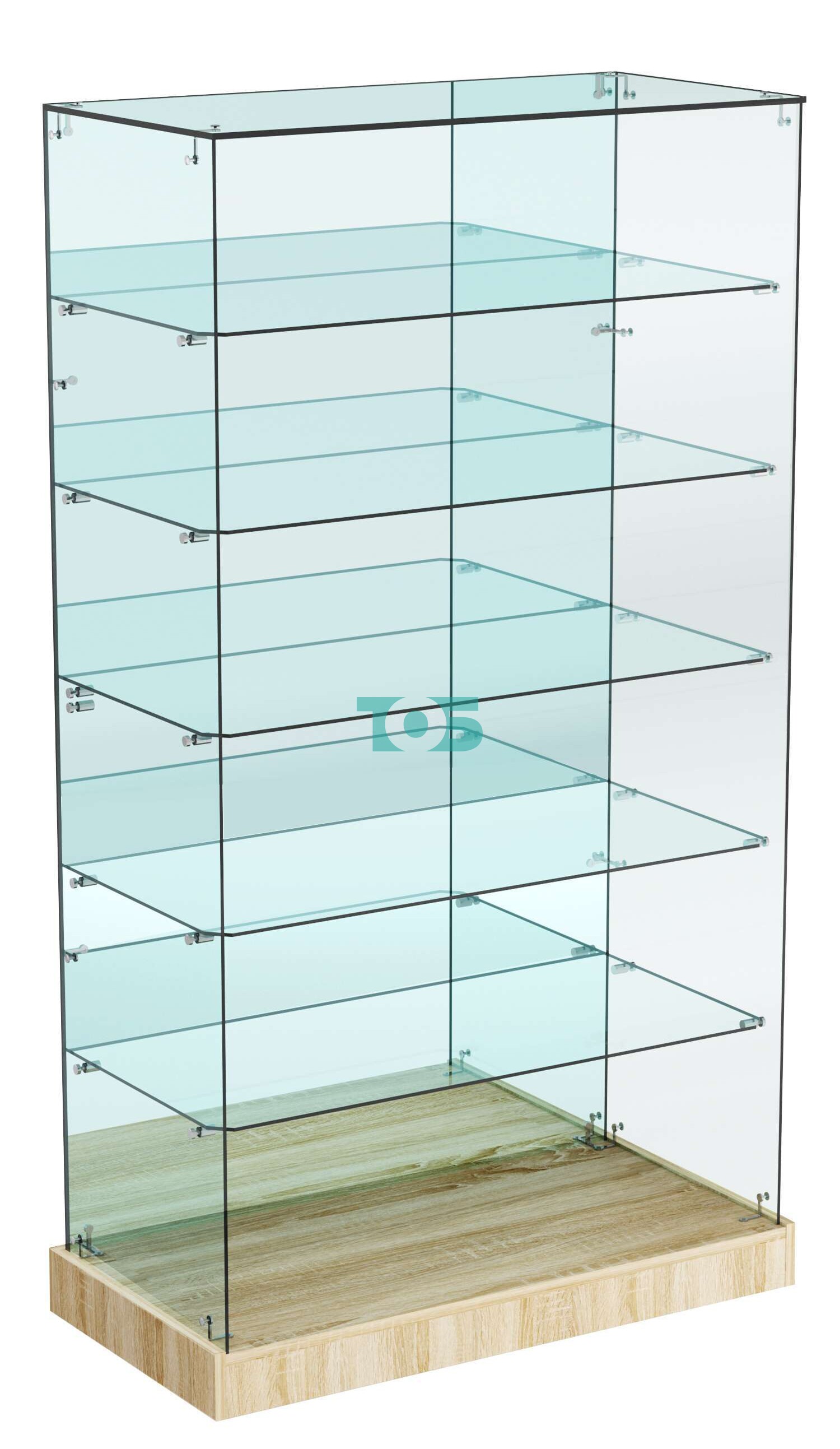 Нагрузка на полку до 5 кг: витрина рассчитана на равномерное распределение нагрузки до 5 кг на каждую полку, что обеспечивает её устойчивость и долговечность.