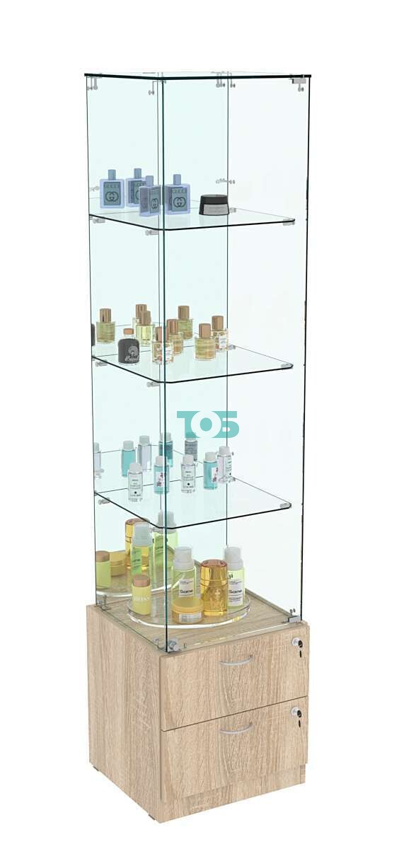 Задняя стенка: зеркальная задняя стенка придаёт витрине стильный вид и создаёт эффект увеличения пространства, делая экспозицию более привлекательной.