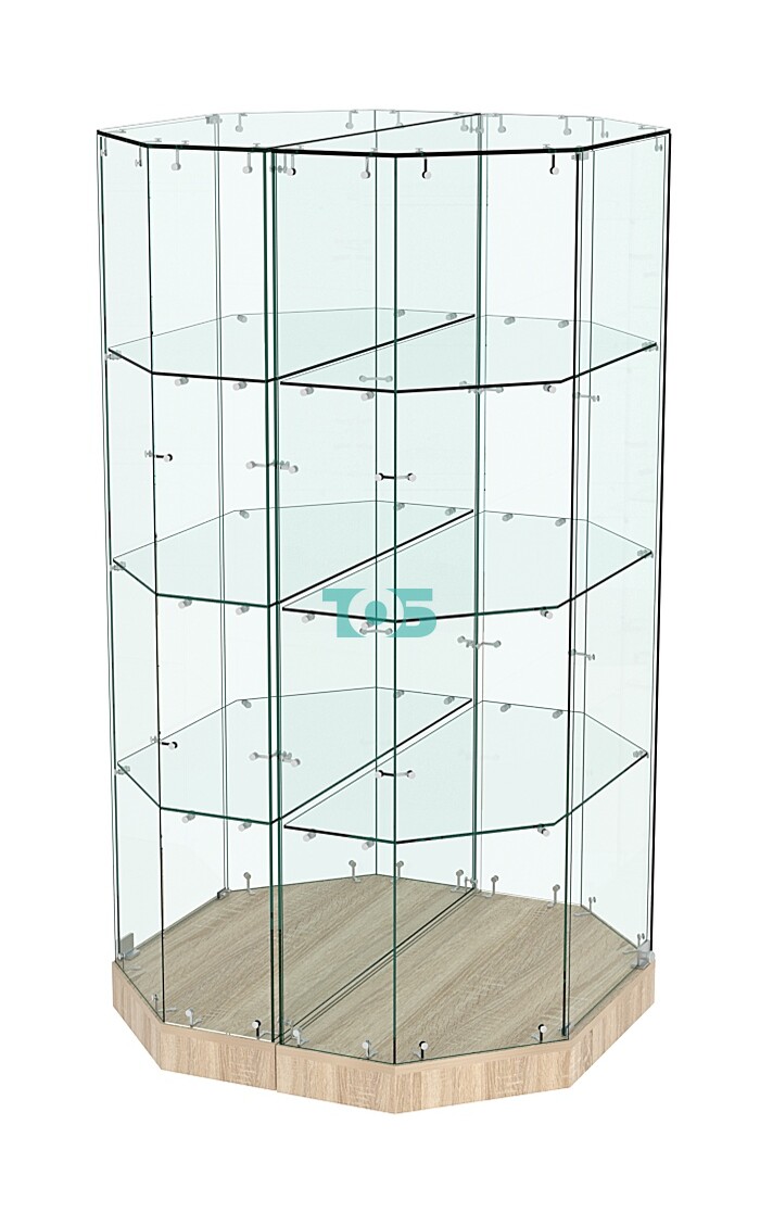 - Скошенные углы: Конструкция витрины имеет скошенные углы, что исключает наличие острых углов и способствует безопасному перемещению покупателей по магазину.