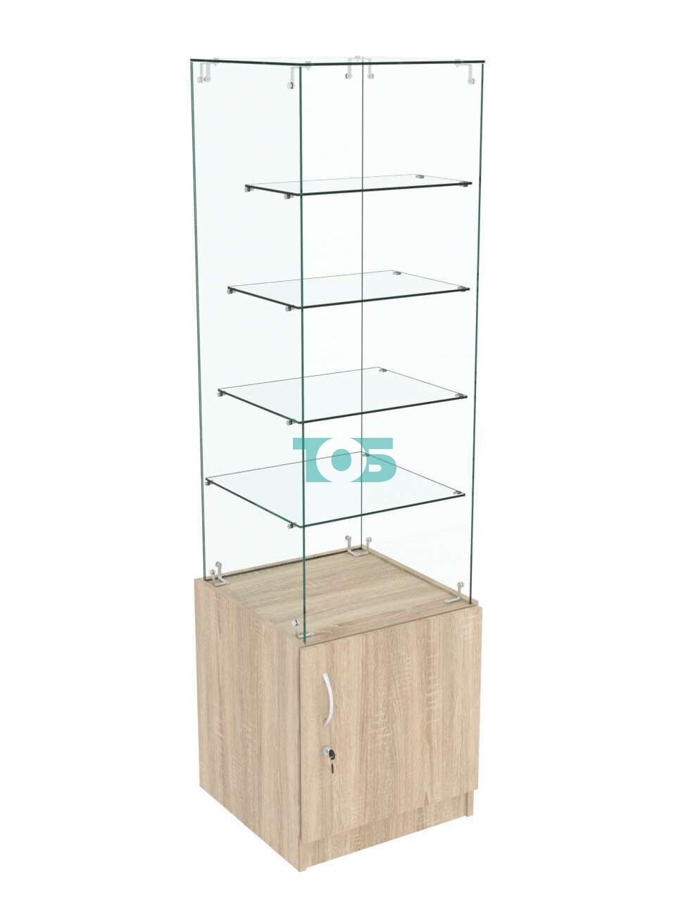 - Стеклянная верхняя крышка: выполнена из прозрачного стекла толщиной 5 мм, что придаёт витрине стильный и современный вид, а также защищает товары от пыли.