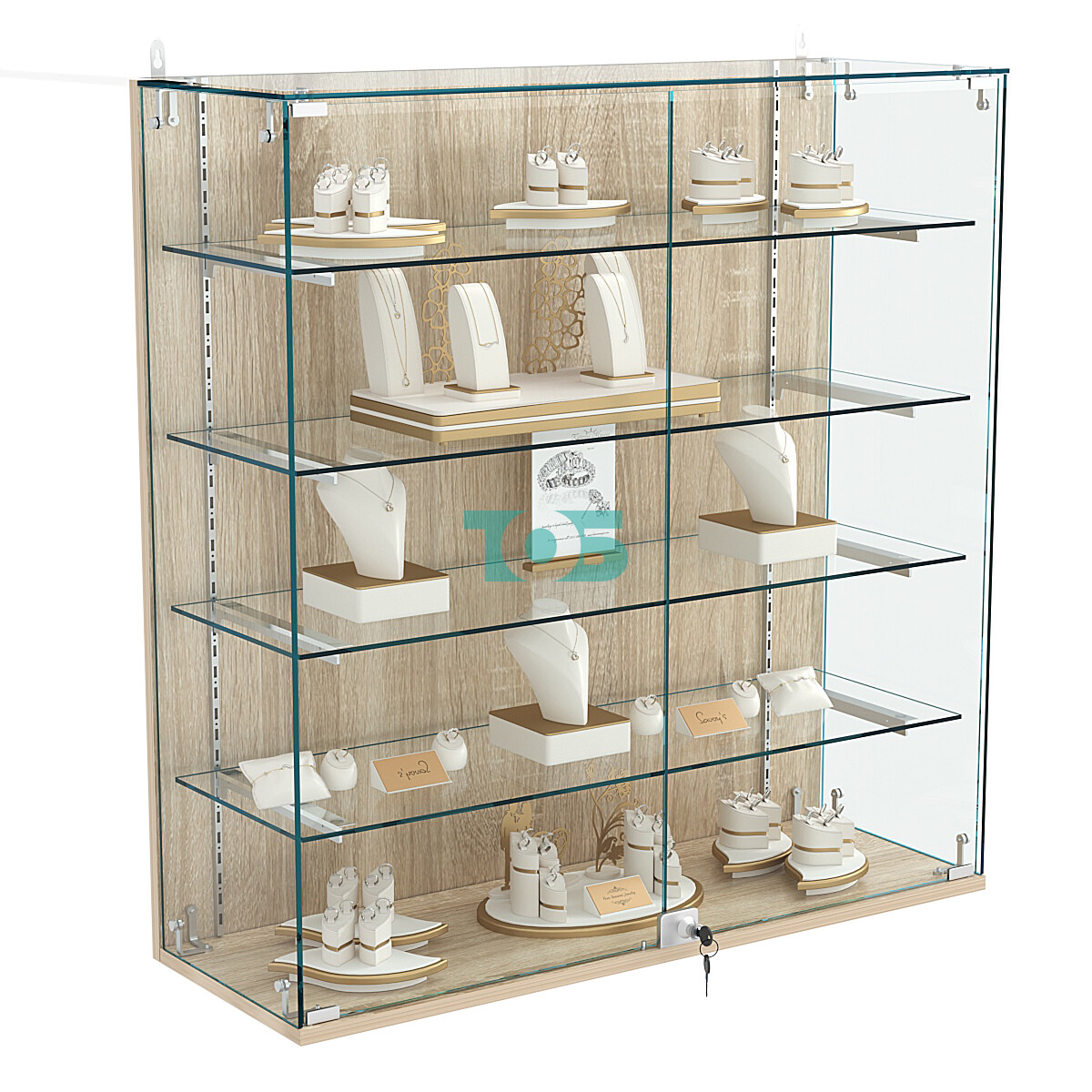 • Стеклянные полки: Витрина оснащена четырьмя стеклянными полками, которые можно легко регулировать по высоте, что позволяет гибко адаптировать пространство под различные размеры и типы товаров.