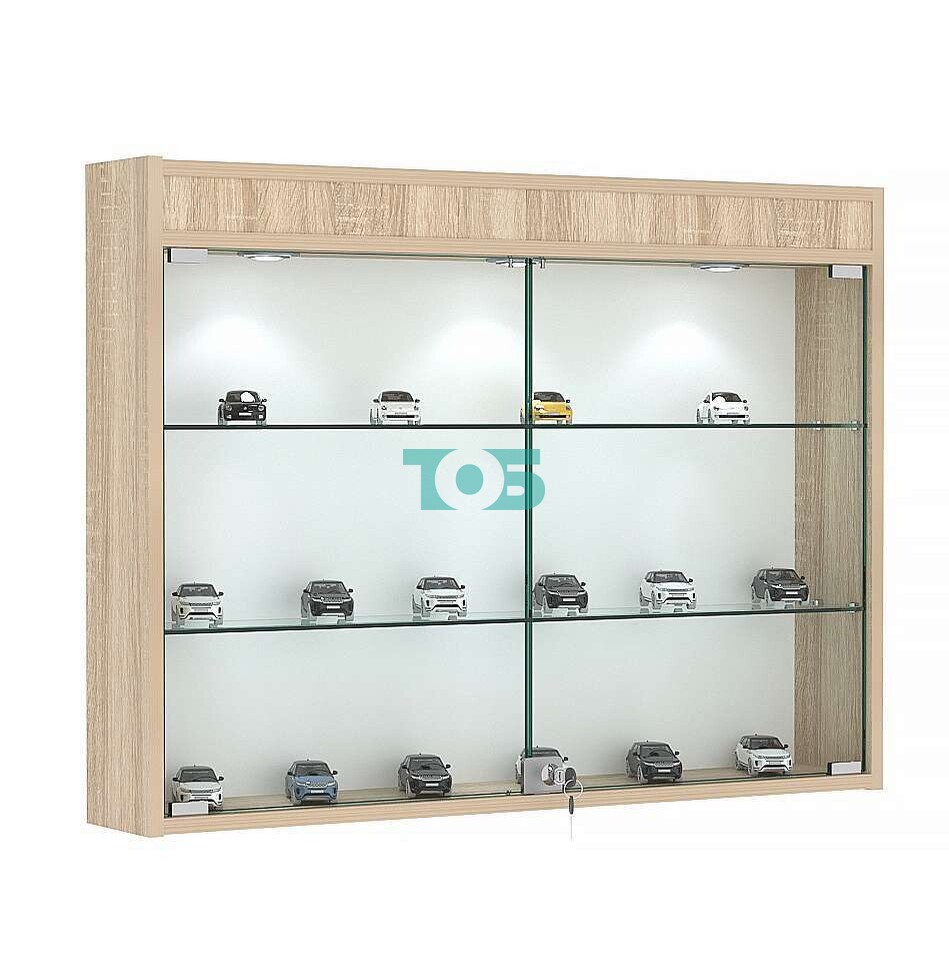 Витрина настенная № 3-3А — это современная и функциональная модель, отличающаяся наличием верхнего фриза с встроенными светильниками, что делает её особенно привлекательной для демонстрации товаров и экспонатов. Широкая конструкция и качественное исполнение обеспечивают комфортное использование и долговечность изделия.
