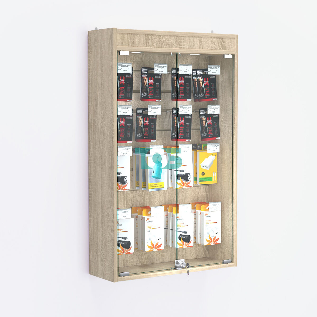Витрина настенная № 202-2Б с эконом панелью и верхней подсветкой — это функциональное и стильное решение для демонстрации товаров или экспонатов. Она сочетает в себе высокую конструкцию, качественные материалы и дополнительные элементы, такие как верхняя подсветка, что делает её идеальным выбором для магазинов, музеев и офисов.