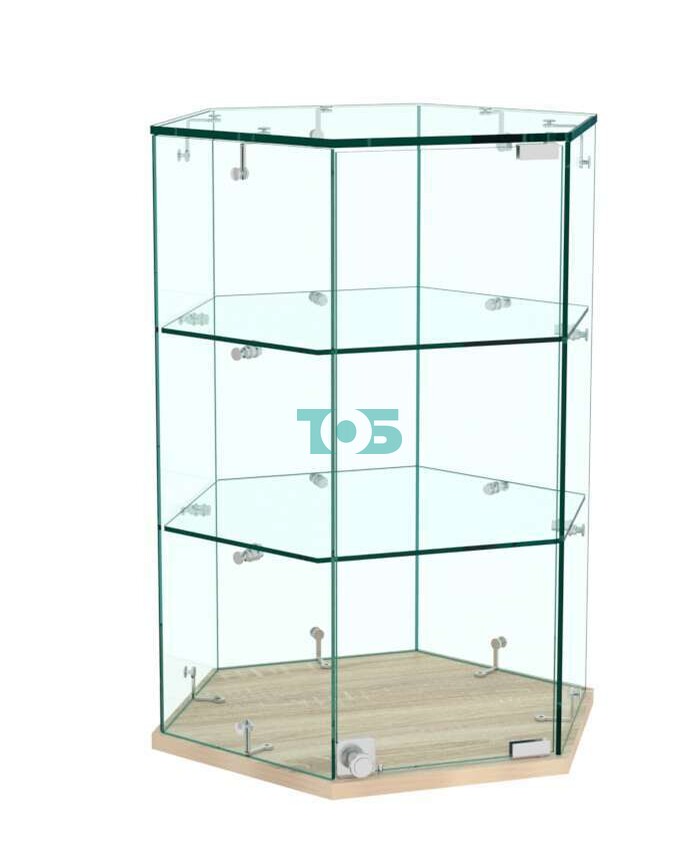 • Верх – прозрачный стекло 8 мм: Обеспечивает легкость и открытость, улучшая обзор товаров.