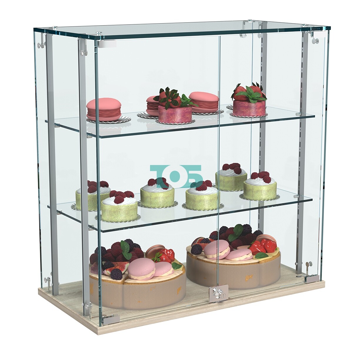 - Привлекательность: Прозрачный верх и стеклянные полки делают витрину эстетически приятной и удобной для восприятия.