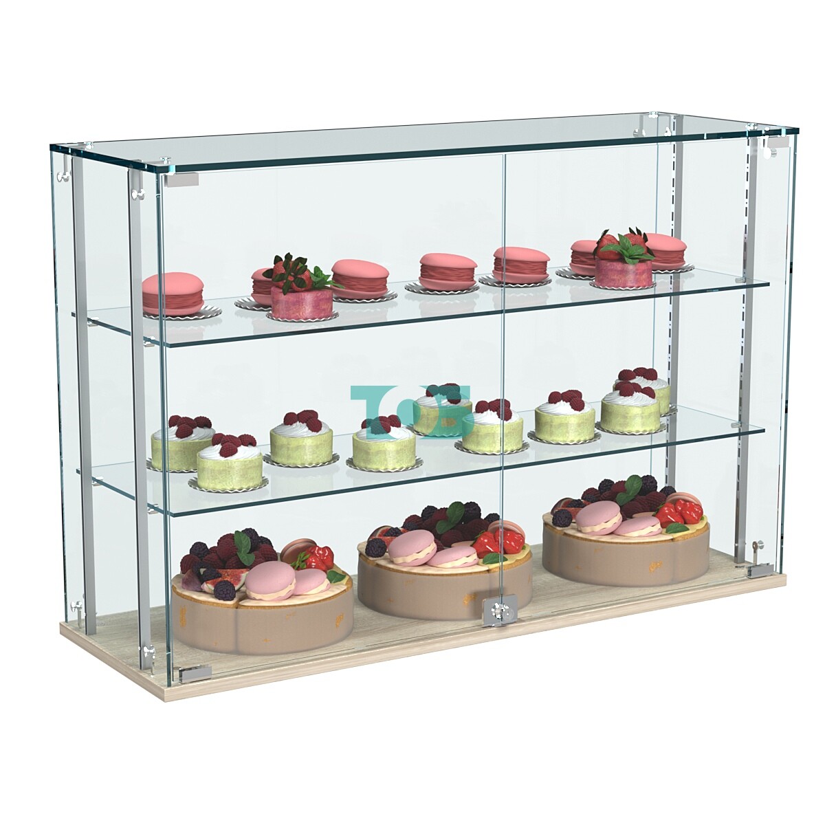 - Компактные размеры: Настольное исполнение витрины позволяет экономить пространство, что особенно актуально для небольших торговых точек.
