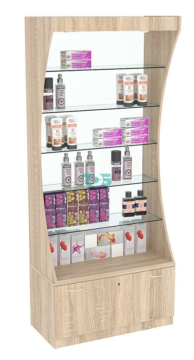 - торцы витрины изогнуты и имеют форму полумесяца;