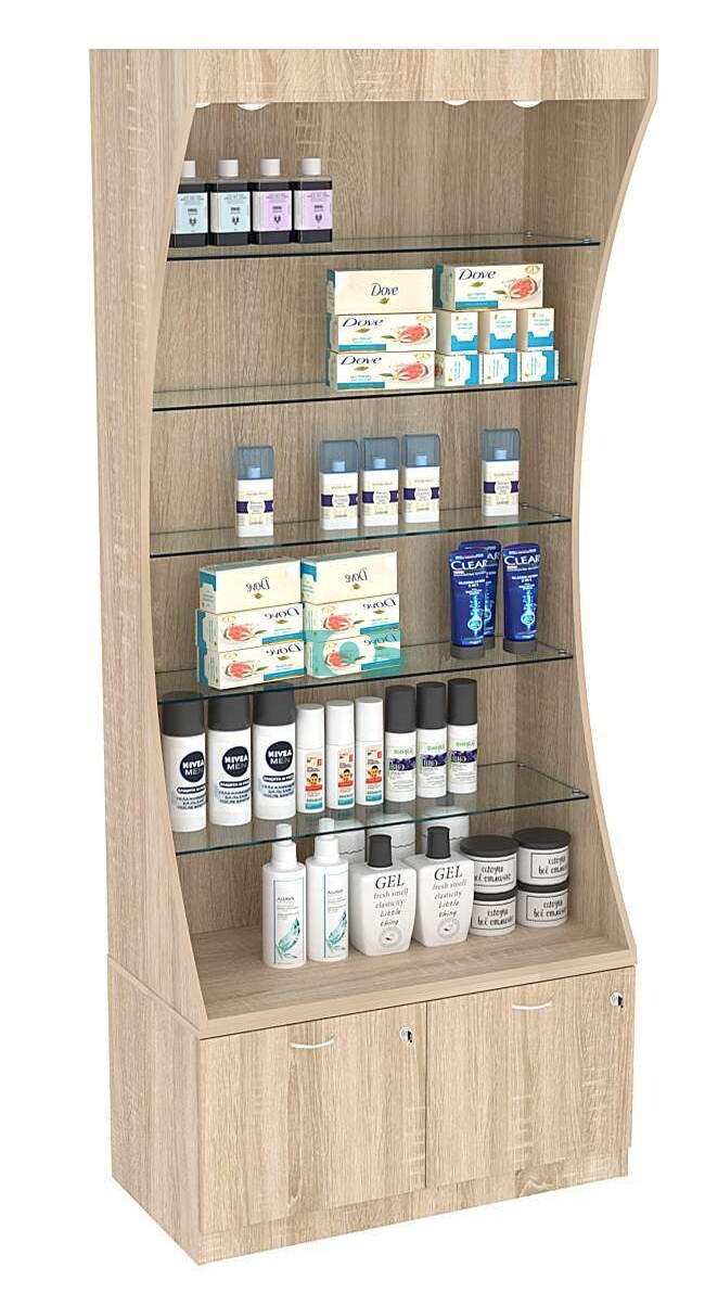 - торцы витрины изогнуты и имеют форму полумесяца;
