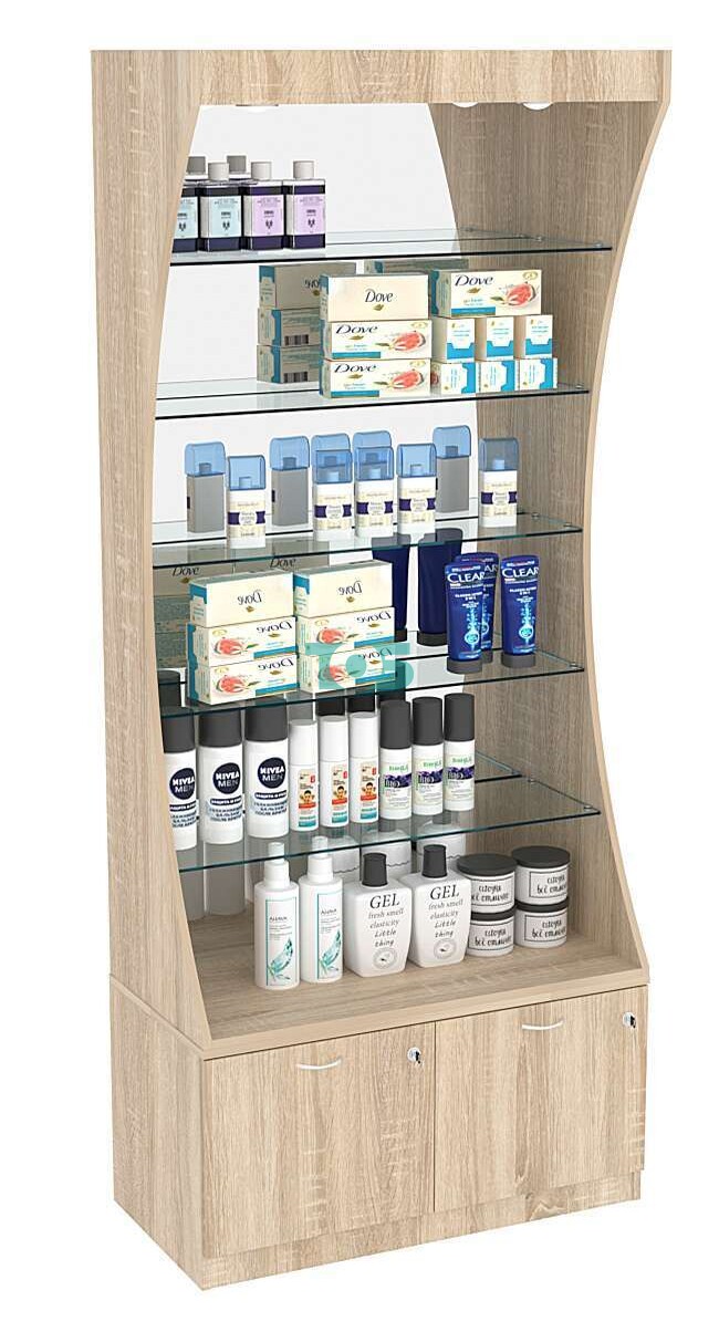 - торцы витрины изогнуты и имеют форму полумесяца;