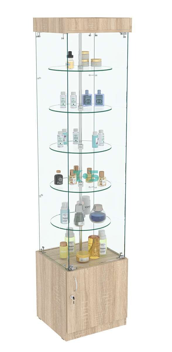 Витрина "Ротация" с вращающимися полками №502 (закрытая, задняя стенка - стекло) представляет из себя отличный вариант недорогой витрины с абсолютно прозрачным каркасом, и вращающимися полками, что позволяет покупателю обзор на 360 градусов выставленного в витрине товара. Полки можно добавлять, каждую полку можно регулировать по высоте. Равномерная нагрузка на каждую полку не более 1,5 кг. Легкая и мобильная витрина собирается в течение 15-20 минут и является незаменимым "помощником" в продвижении товара различных брендов.