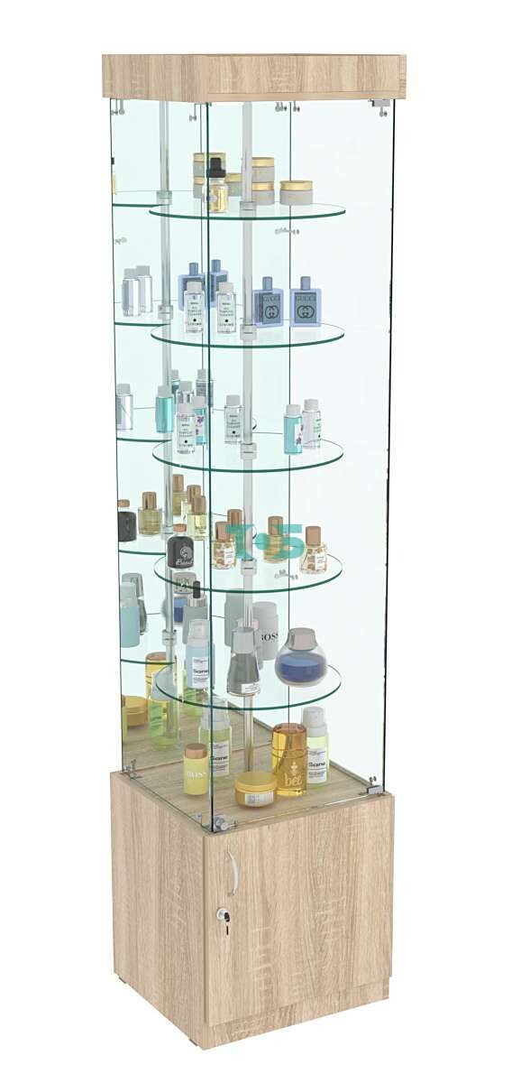 Витрина "Ротация" с вращающимися полками №504 (закрытая, задняя стенка - зеркало) представляет из себя отличный вариант недорогой витрины с абсолютно зеркальной задней стенкой, и вращающимися полками, что позволяет покупателю обзор на 360 градусов выставленного в витрине товара. Полки можно добавлять, каждую полку можно регулировать по высоте. Равномерная нагрузка на каждую полку не более 1,5 кг. Легкая и мобильная витрина собирается в течение 15-20 минут и является незаменимым "помощником" в продвижении товара различных брендов.