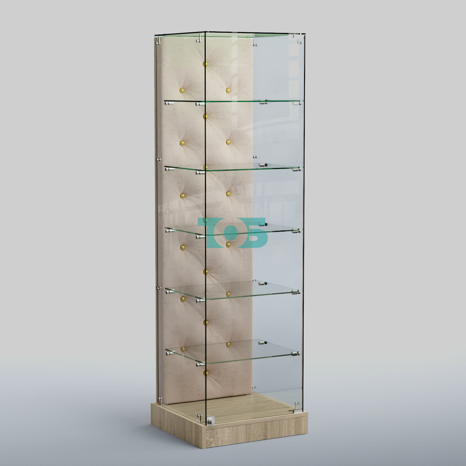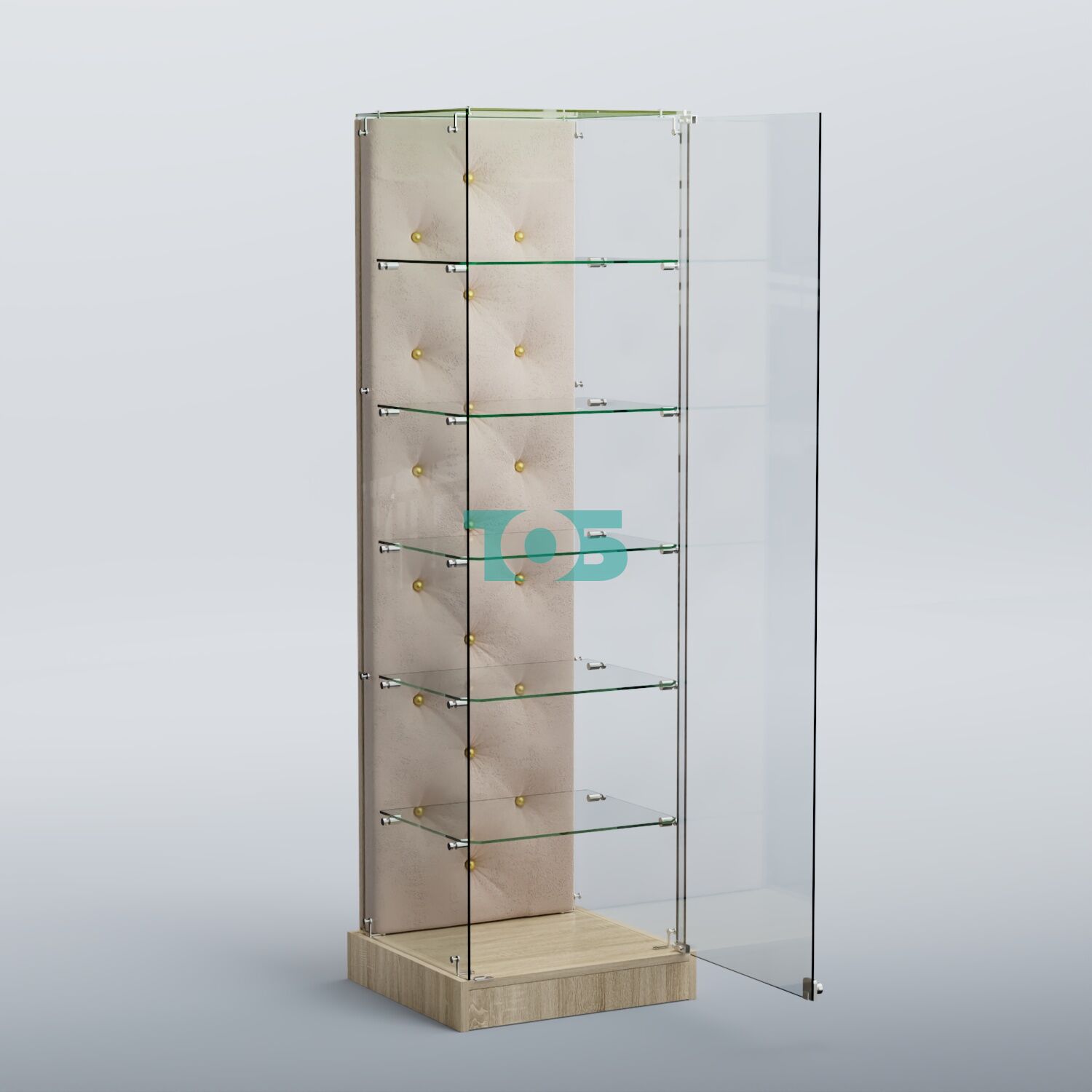 - задняя стенка витрины декорирована обивкой из велюра, каретка с золотыми втулками;