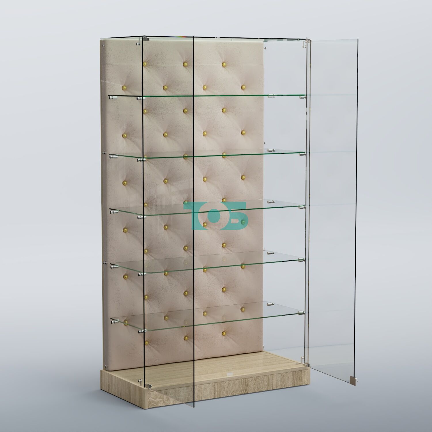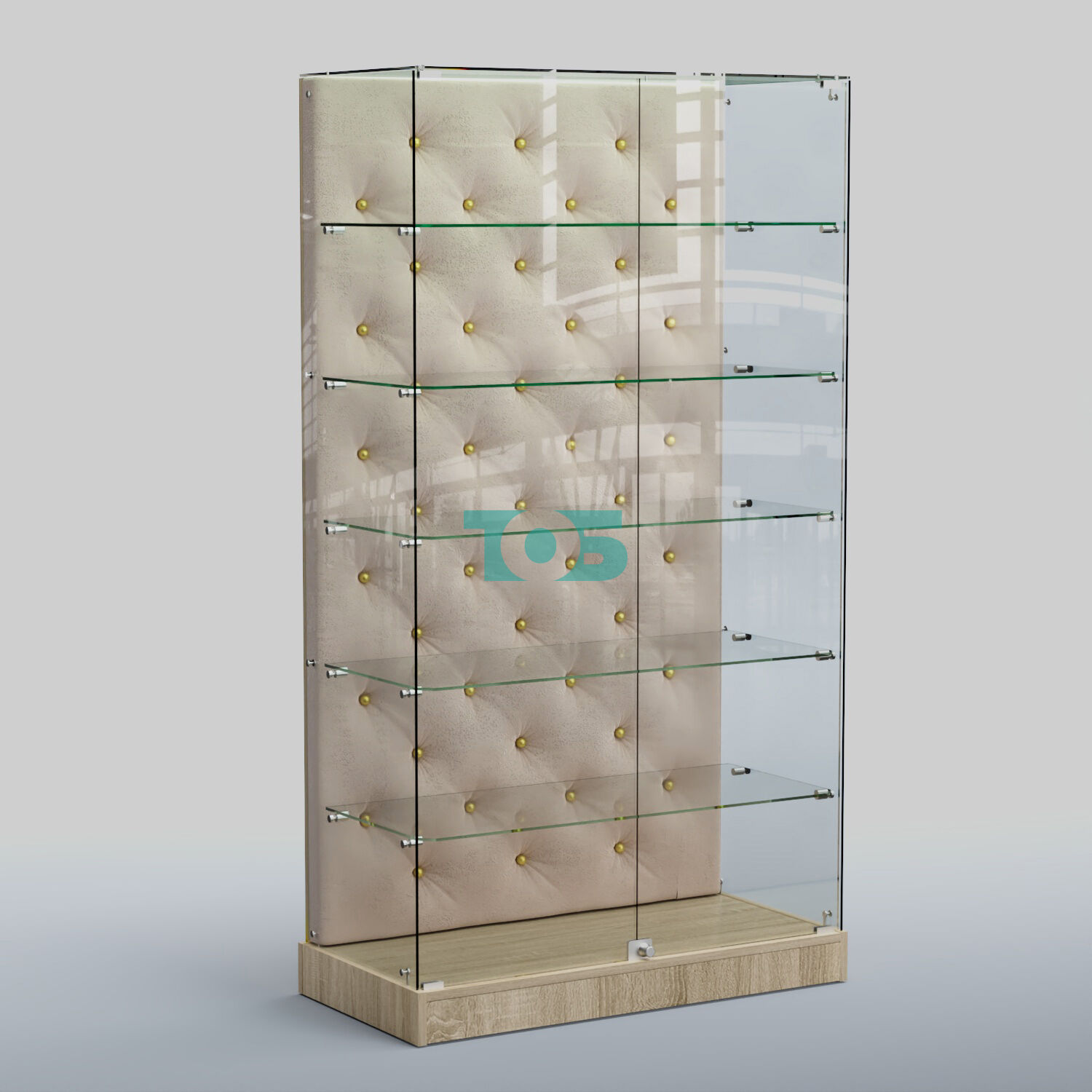 - задняя стенка витрины декорирована обивкой из велюра КРЕМОВЫЙ БАРХАТ, карета с золотыми втулками;