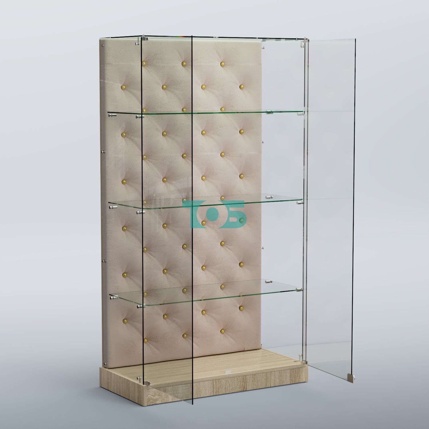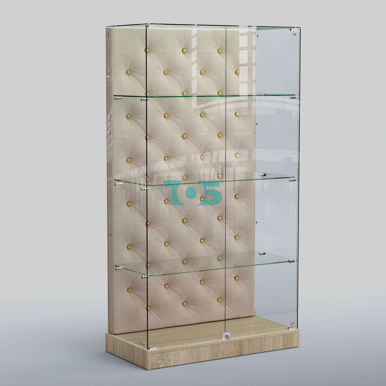 - задняя стенка витрины декорирована обивкой из велюра, каретка с золотыми втулками;