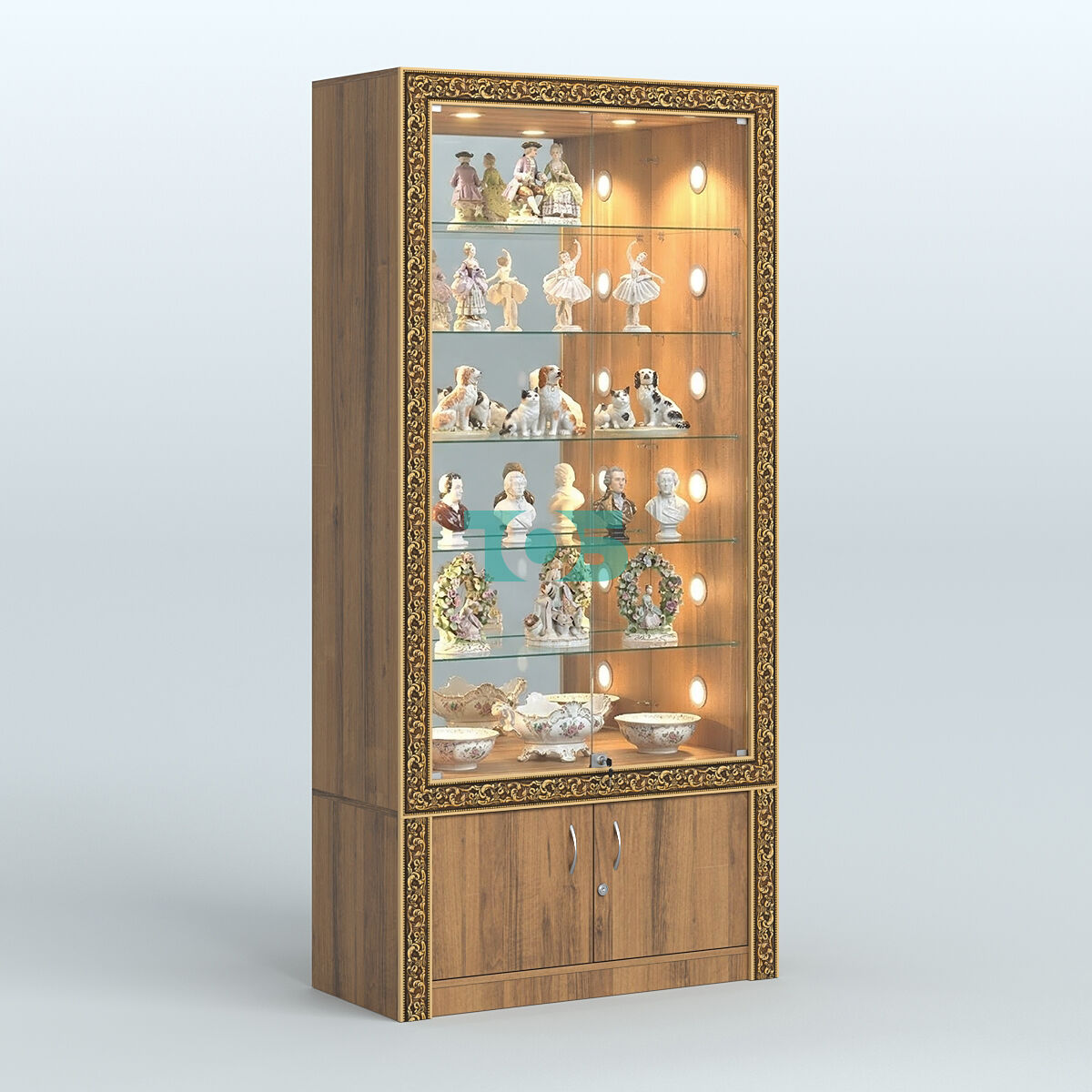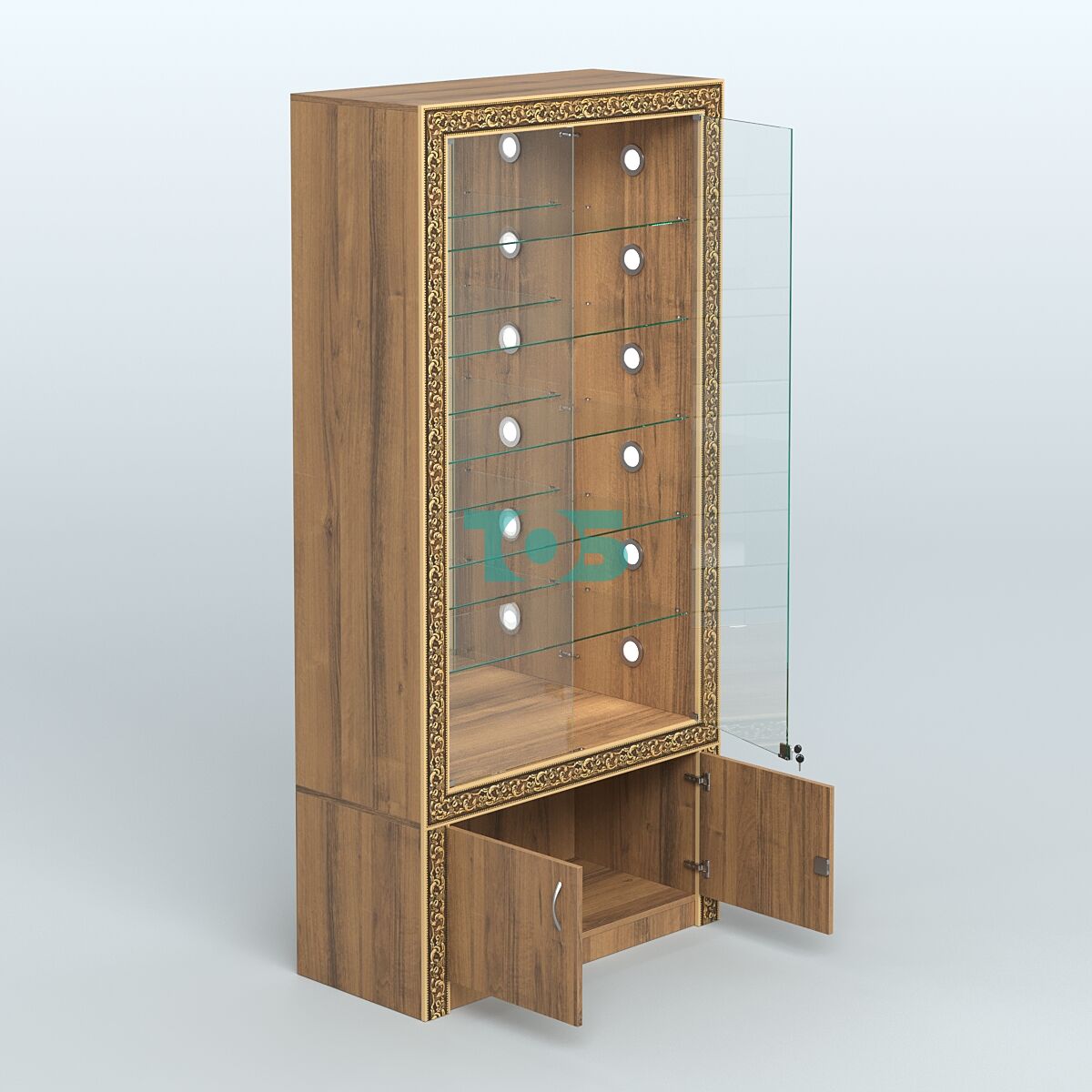 - верхний фриз витрины укомплектован диодной подсветкой (два встроенных светильника);
