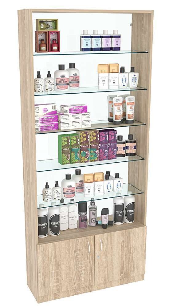 Задняя стенка: прозрачная, выполнена из стекла, что придаёт витрине лёгкость и позволяет максимально использовать пространство для демонстрации товаров.