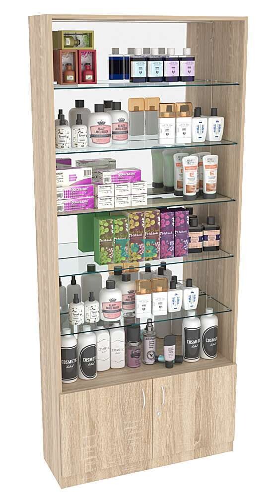 Задняя стенка: зеркальная, что придаёт витрине стильный вид и создаёт эффект расширения пространства.