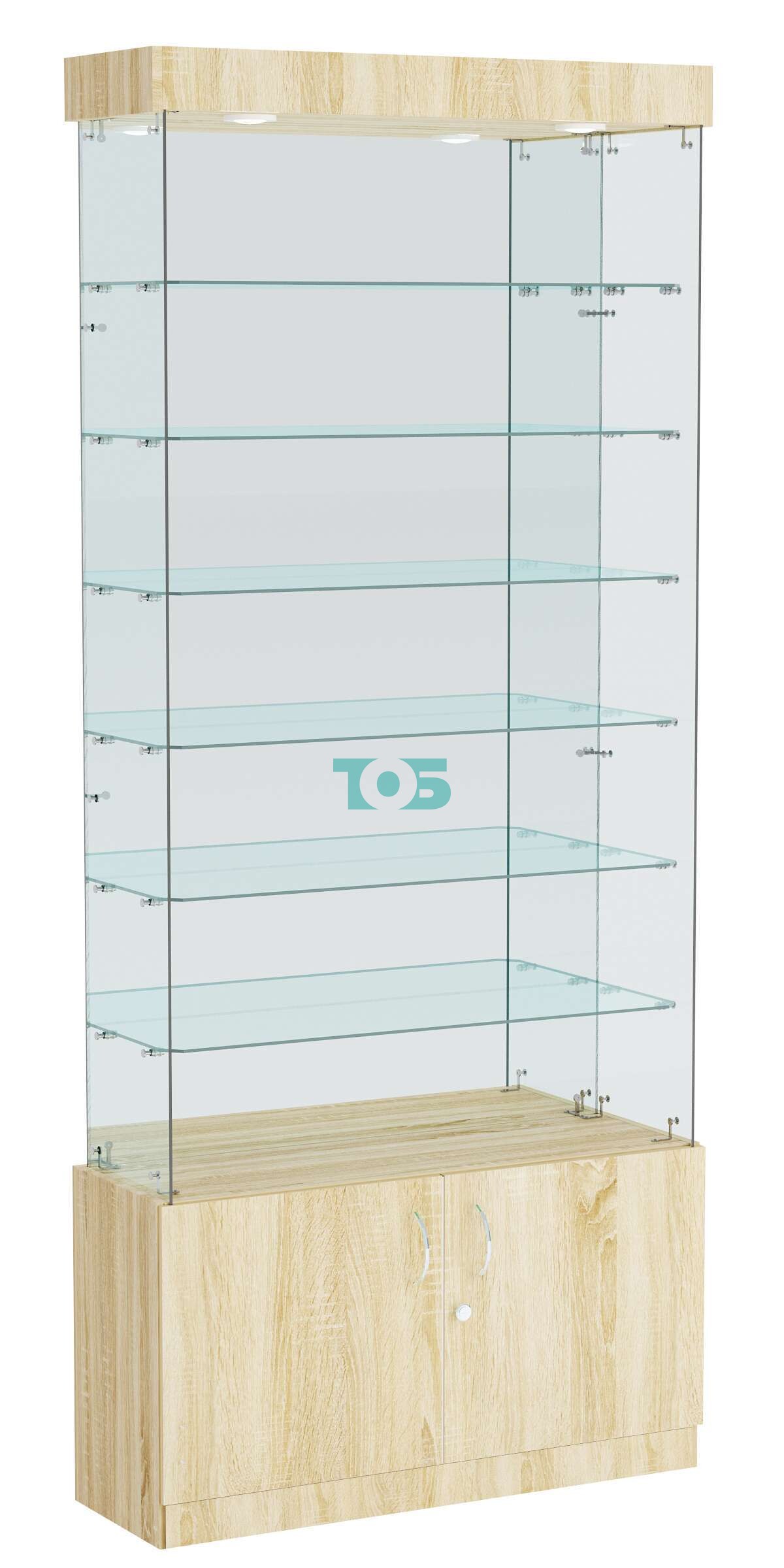 • Количество стеклянных полок: Витрина оборудована шестью стеклянными полками, что предоставляет достаточно места для размещения разнообразной продукции и аксессуаров.