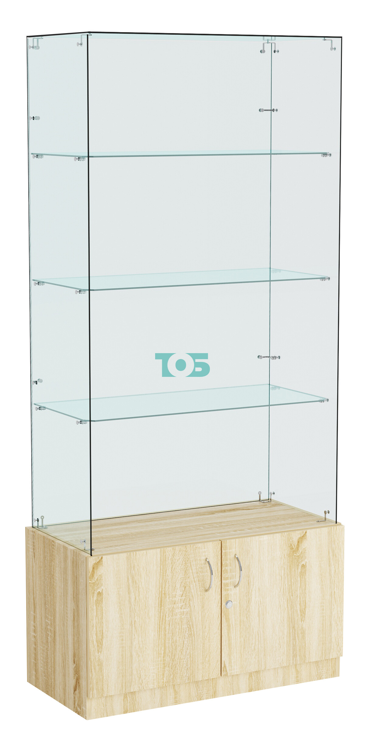 • Задняя стенка: Задняя стенка выполнена из стекла, что создаёт современный вид и способствует лучшей видимости представленных товаров.