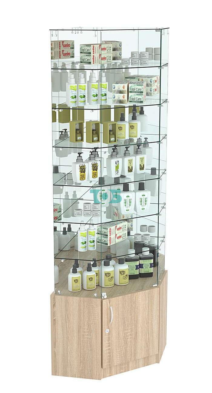 • Торцы витрины – 300 мм: Оптимальная ширина для удобного размещения в углу помещения.