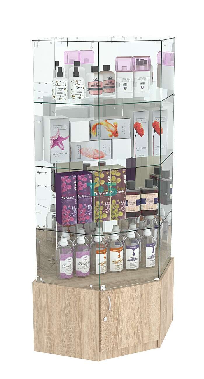• Витрина "Истра" угловая №222, шестигранная (З/С - зеркало), Орех