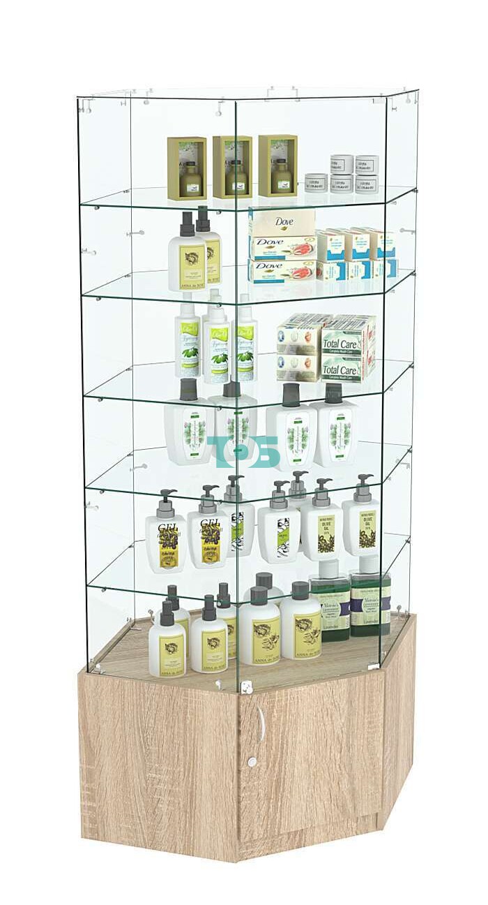 Угловая витрина "Истра" № 918 представляет собой стильное и функциональное решение для демонстрации товаров в магазинах, выставочных залах и других торговых пространствах.