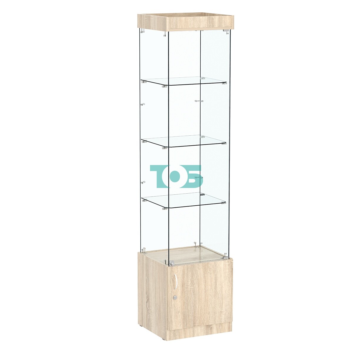 - Прозрачная задняя стенка: Задняя стенка выполнена из прозрачного материала, что делает витрину более лёгкой и позволяет выставленным товарам быть видимыми с любой стороны.