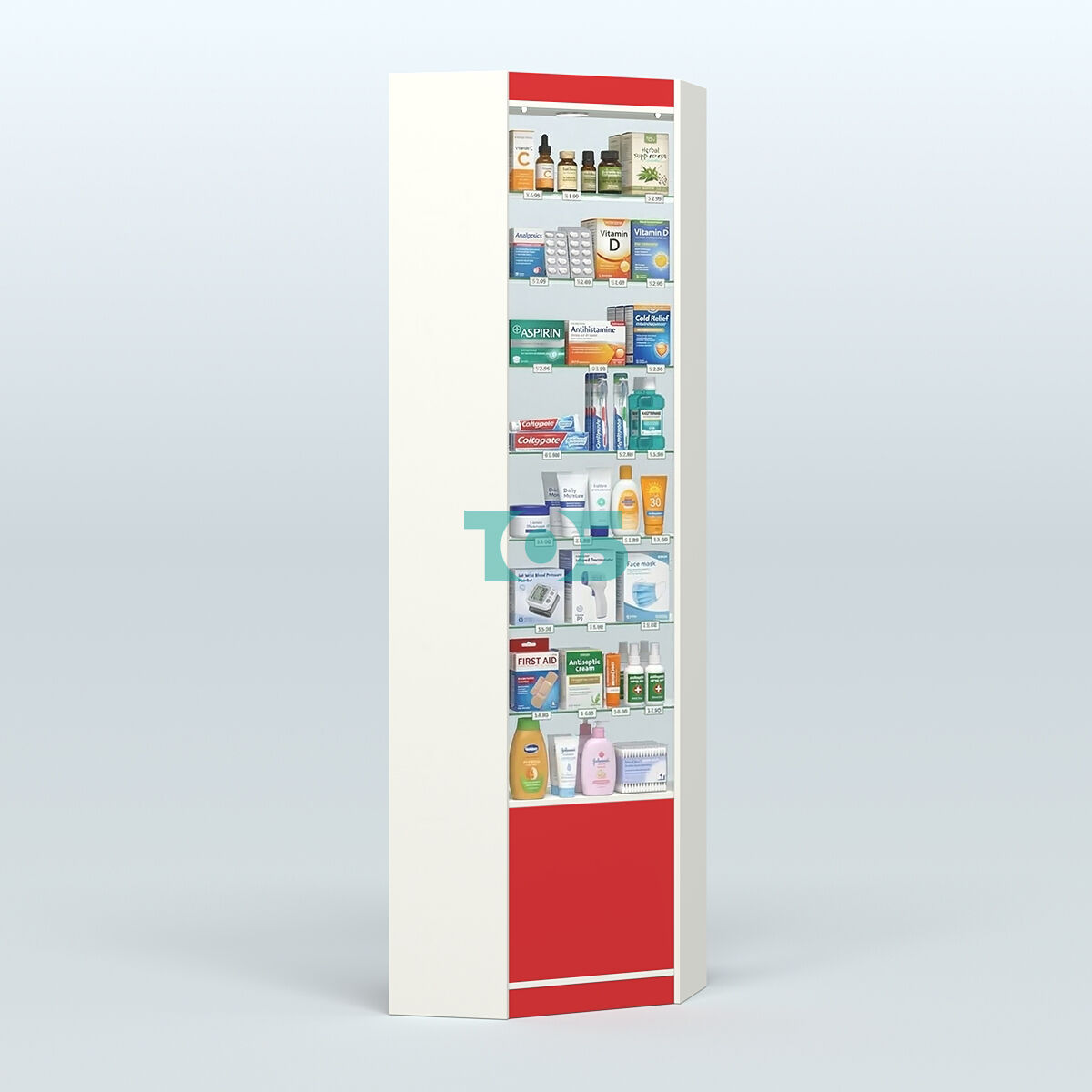 • Высокая витрина серии Эконом №305А внутренний угол (без дверей), Белый + Красный