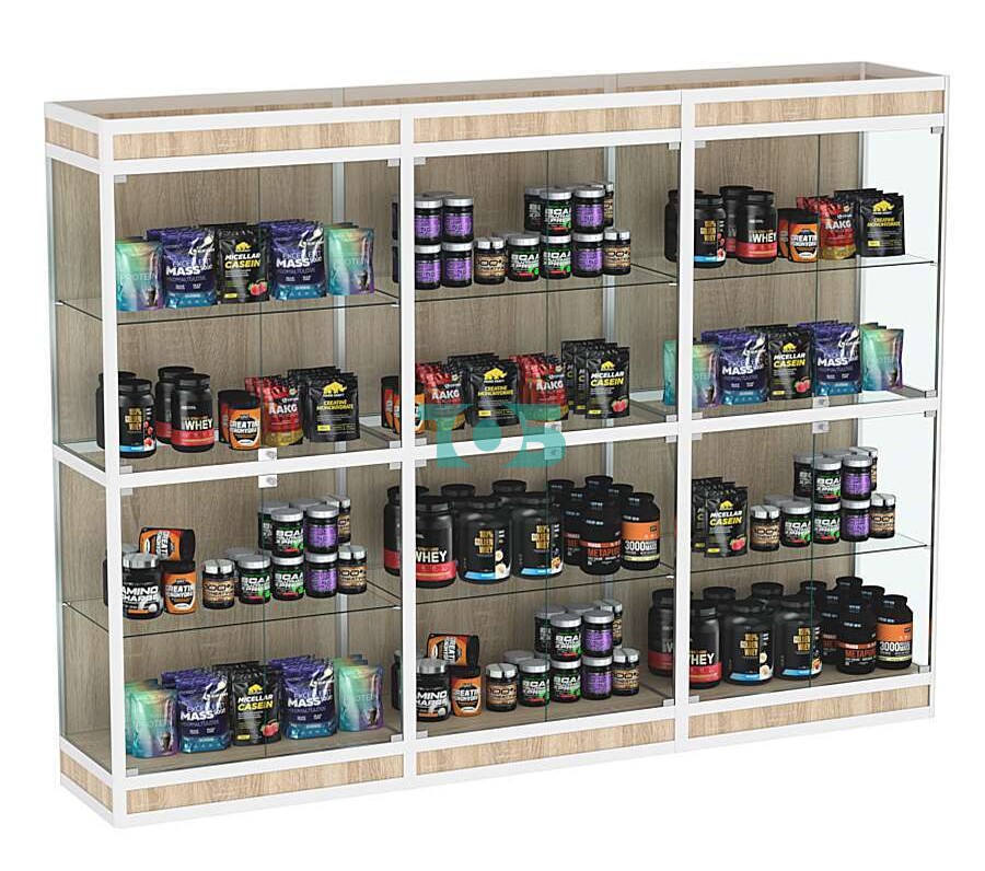 - также имеется возможность установки дополнительных точечных светильников или ламп дневного освещения, замены задней стенки на стекло или зеркало, изменения размеров витрины;