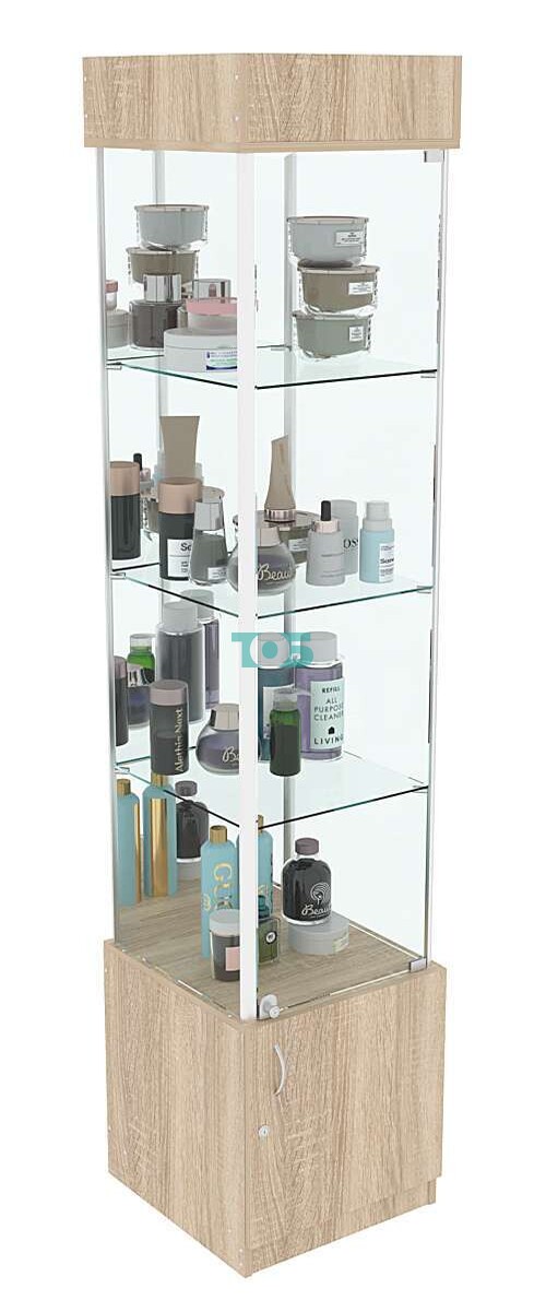 - Задняя стенка зеркальная. Такая деталь визуально увеличивает пространство, делая выставленные предметы на полках более заметными и привлекательными. Помимо этого, улучшает обзор, т.к покупатели могут видеть товары со всех сторон.