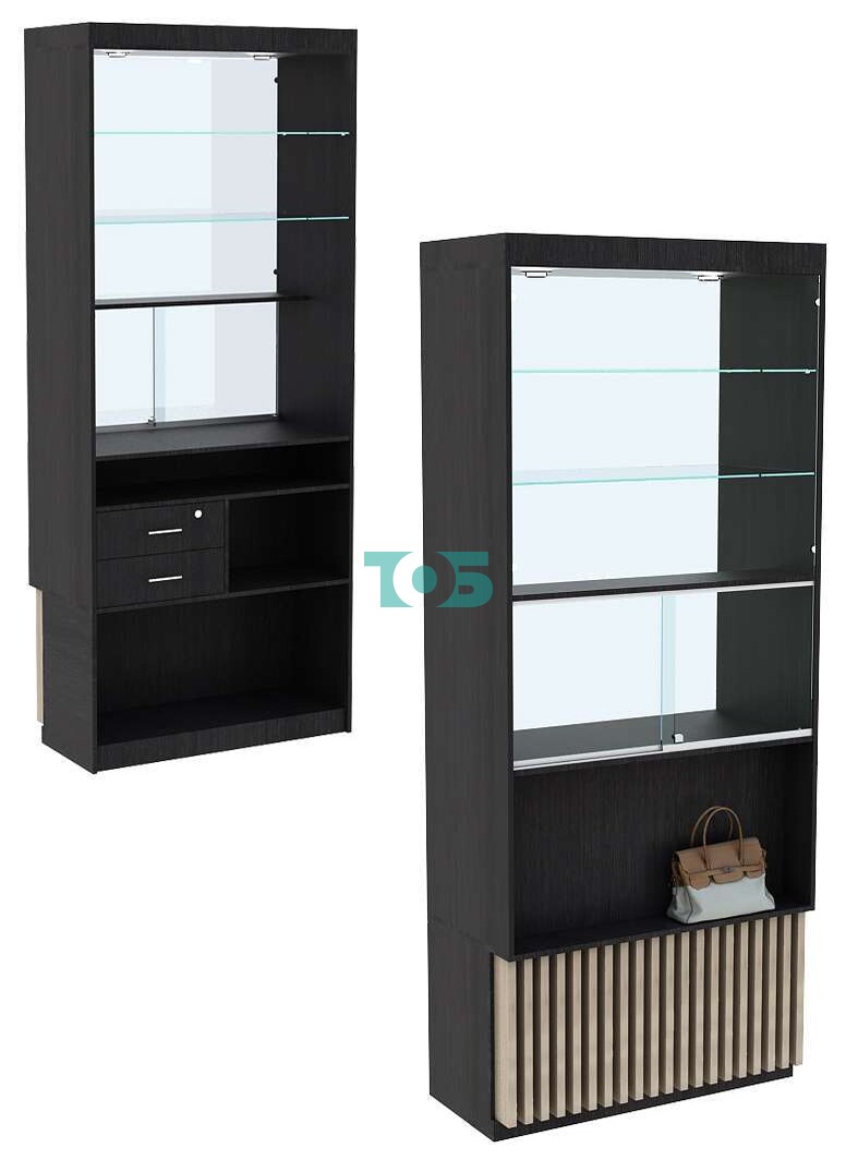 - Новая линия высоких витрин серии ВЕРТИКАЛЬ может быть изготовлена в цветах: БЕЛЫЙ, СВЕТЛЫЙ БУК, ВИШНЯ, СЕРЫЙ, ОРЕХ, ДУБ ВЕНГЕ и ДУБ СОНОМА. Яркий дизайн высокой витрине придают вертикальные планки толщиной 25мм, которые могут быть выполнены в разных цветах. Внешний вид высокой витрины привлекает внимание Покупателя красивым видом и нестандартной конфигурацией. Идеально подходит для магазинов косметики, парфюмерии, постельного белья и подарков. Использовать в конструктиве витрины можно самые разные дополнительные цвета ламинированного ДСП по желанию Клиента;