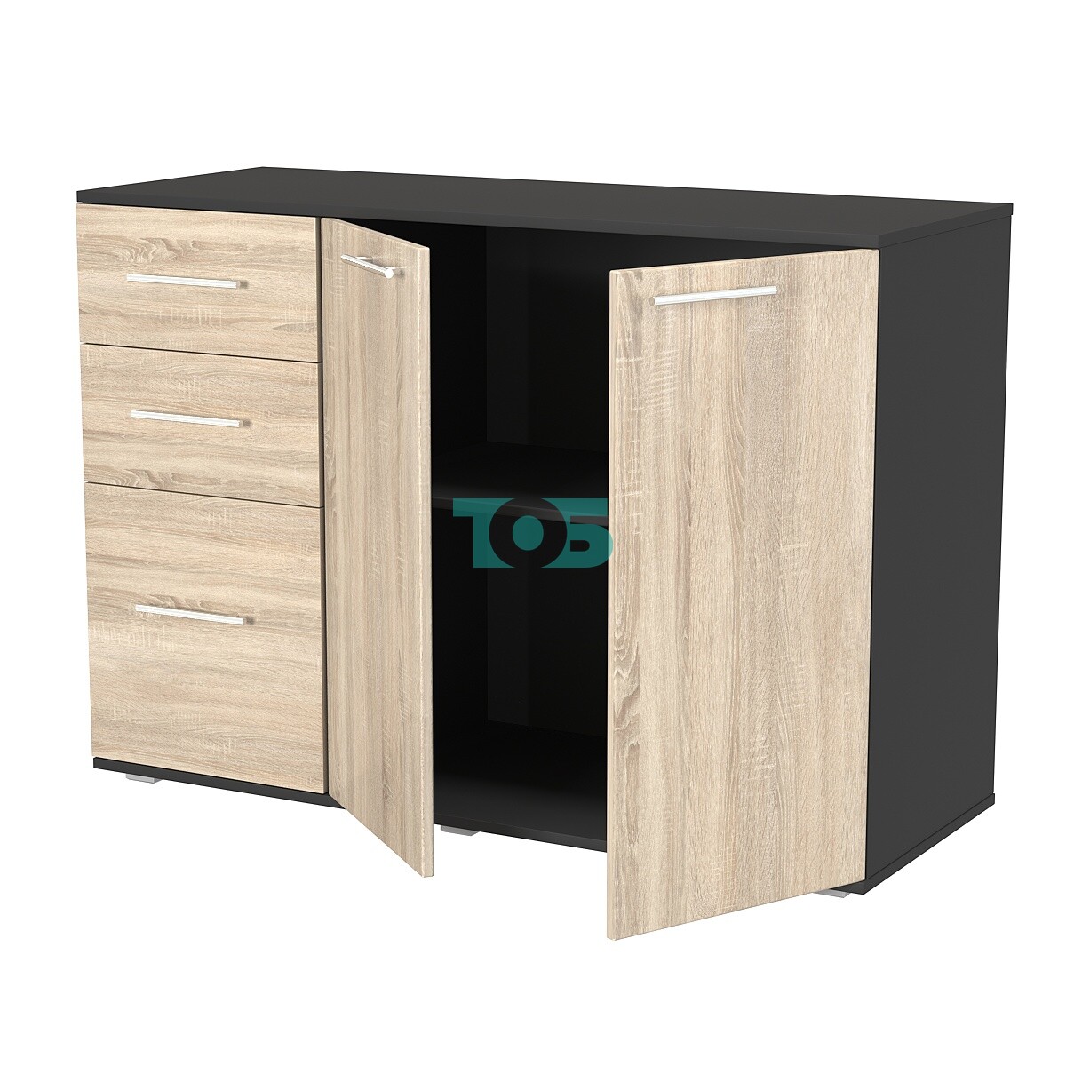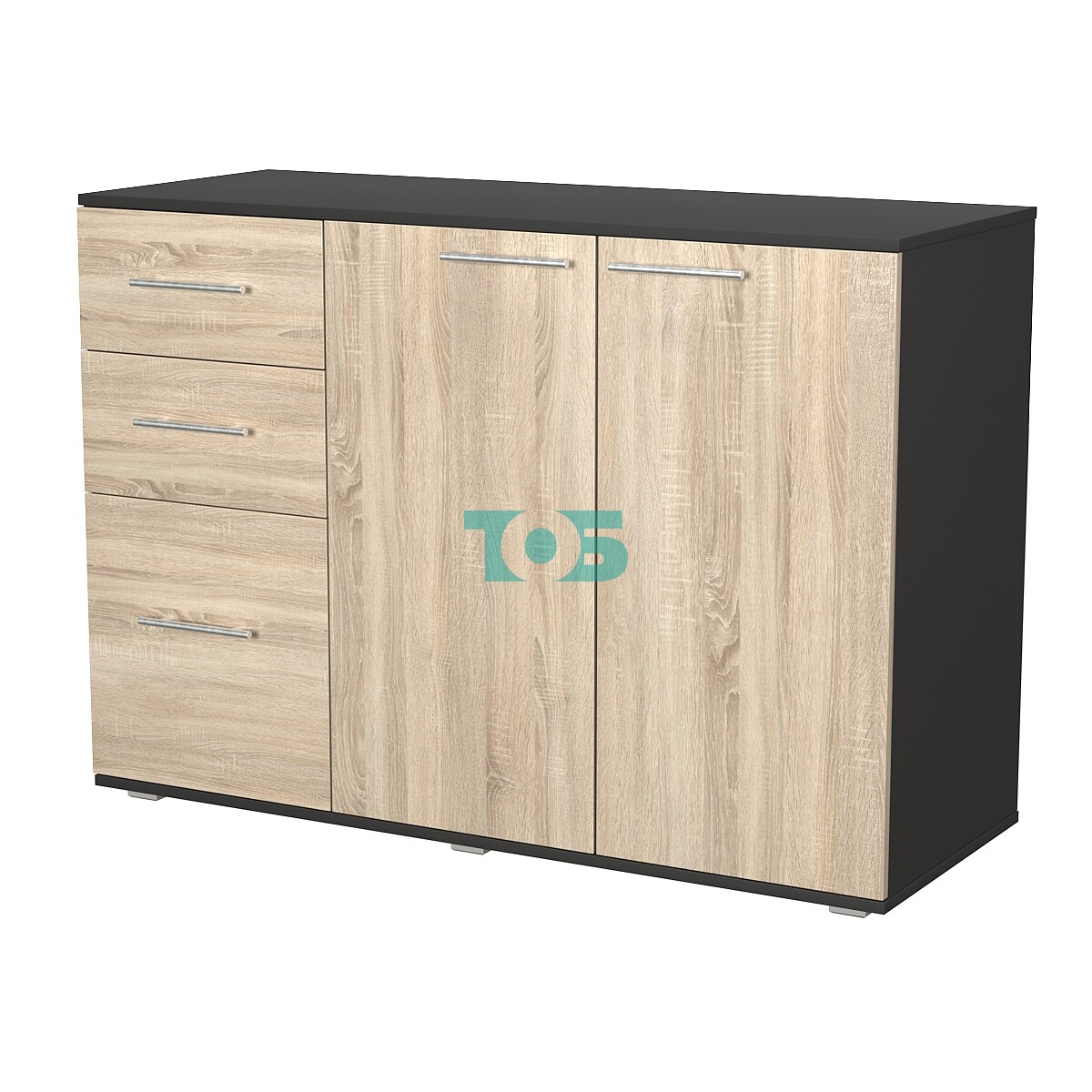• Комод ВЕКТОР КВ-06, Черный + Дуб Сонома