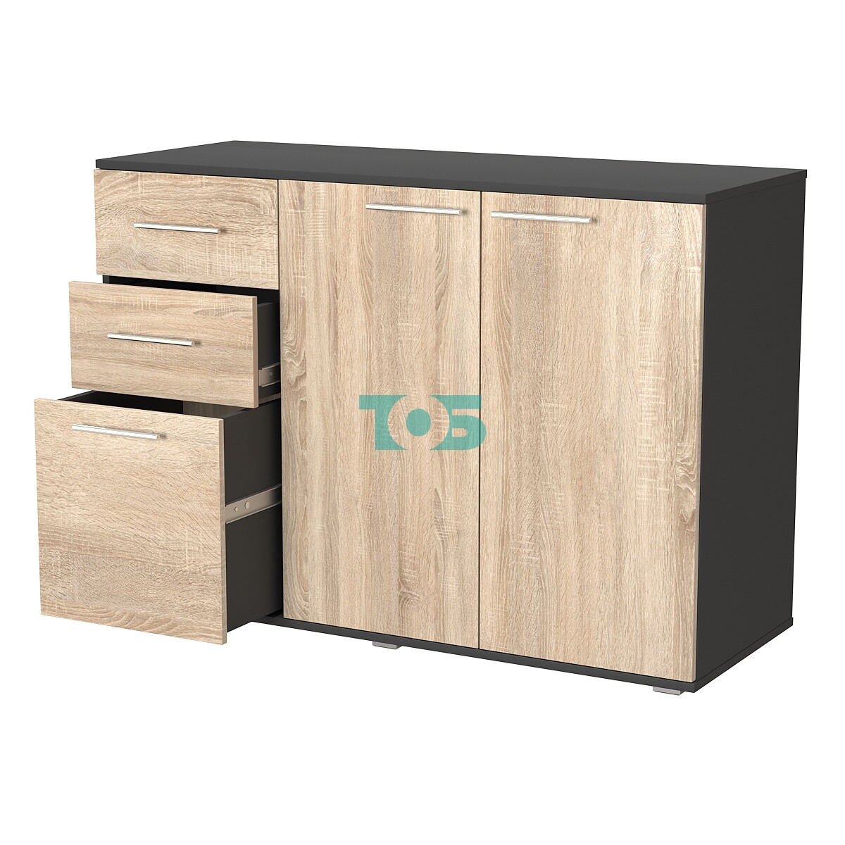 • Комод ВЕКТОР КВ-06, Дуб Золотистый и Темно-Серый