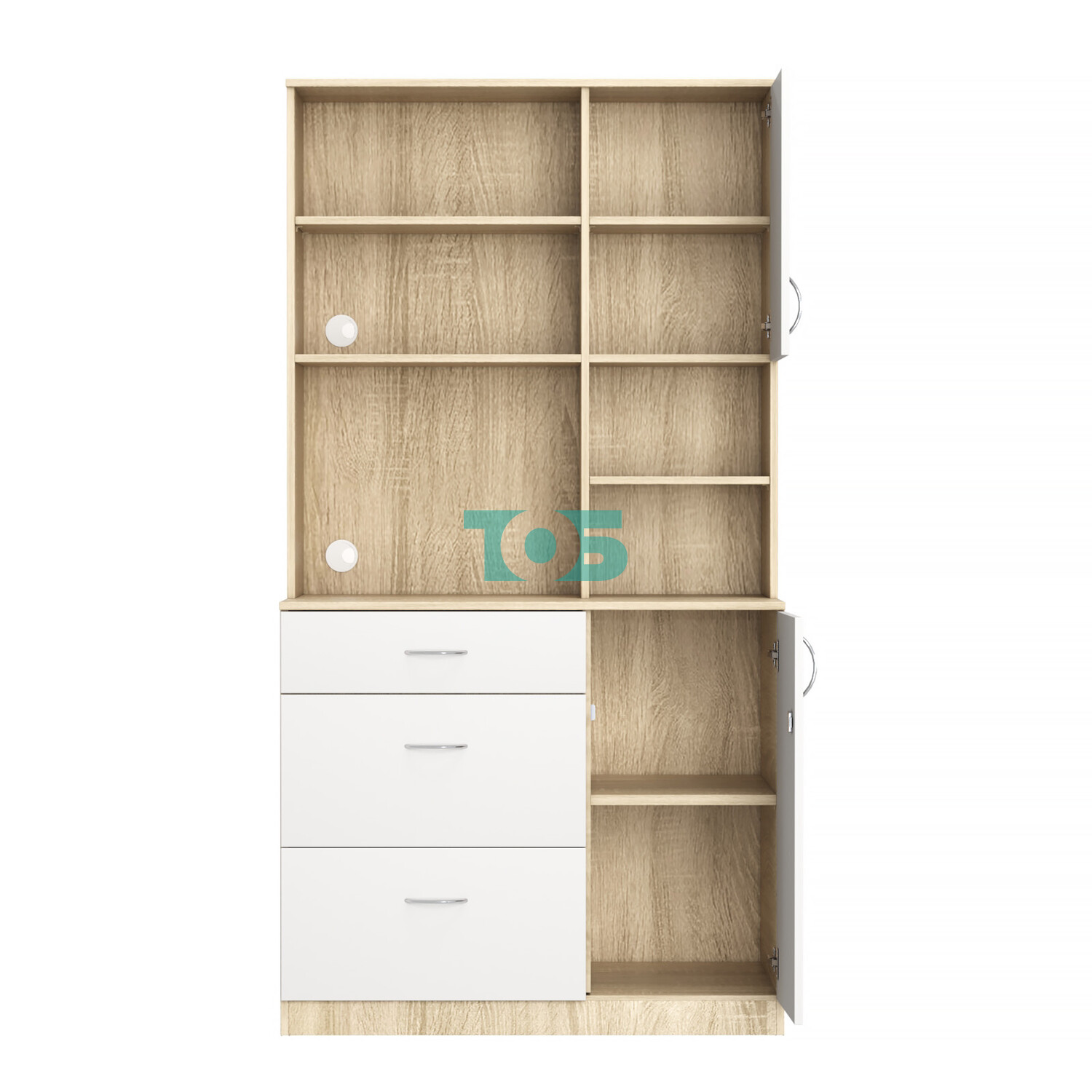 • Выдвижные ящики: три выдвижных ящика предоставляют дополнительное пространство для хранения мелких предметов, таких как столовые приборы, салфетки и т. п.