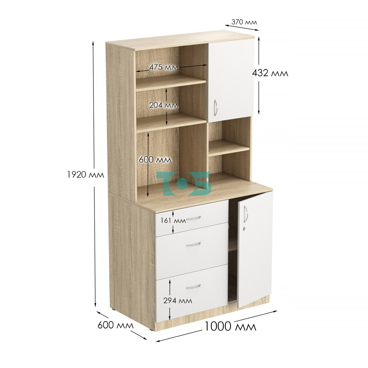 • Глубина верхней надставки: 350 мм. Это позволяет разместить на ней необходимые предметы, сохраняя при этом достаточно места для комфортной работы.