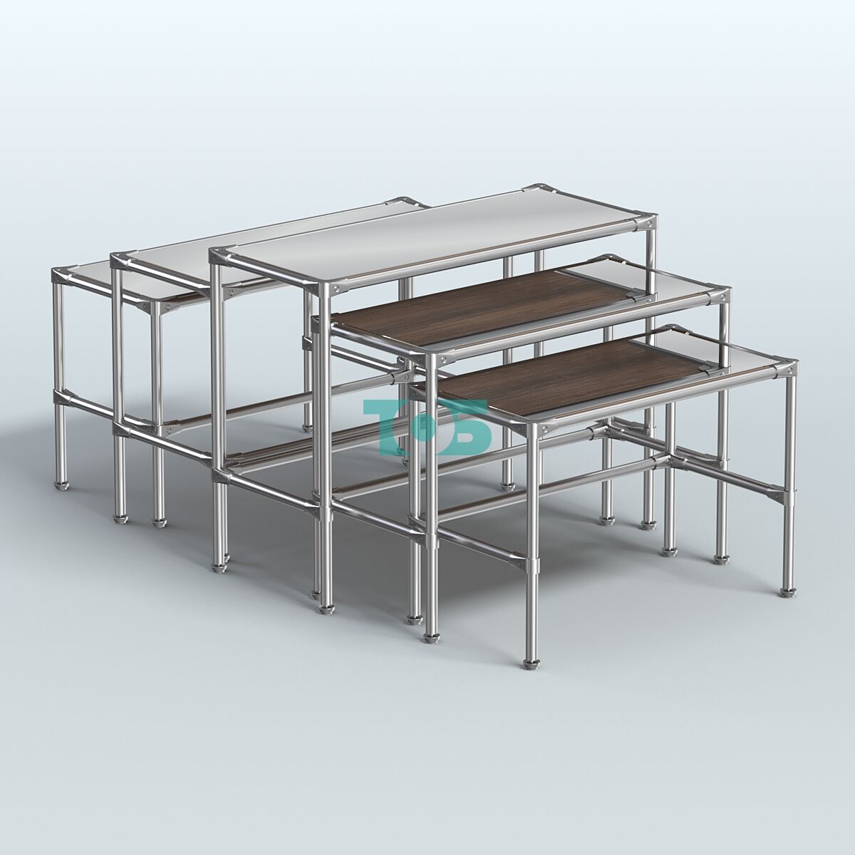 • Комплект столов №2-5 с полками зеркало 4мм, Темно-Серый