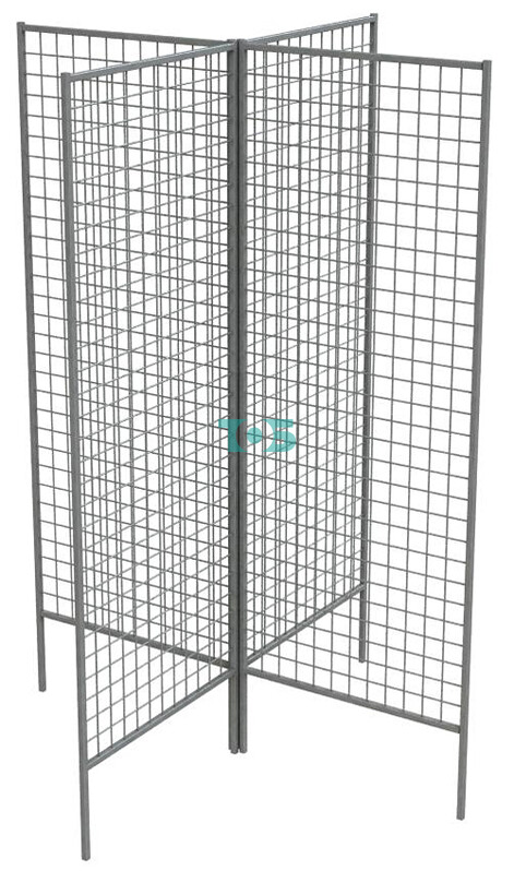 Используя специальные соединители для стыковки сетчатых модулей, можно создавать различные конструкции, с помощью которых легко обыграть любую геометрию торгового помещения.