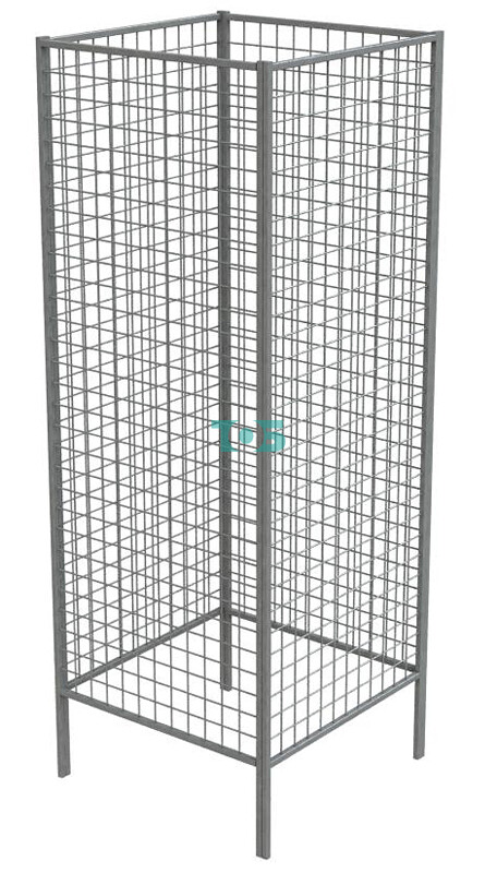 Сетчатый модуль - сварная конструкция из сетки с металлическим каркасом. Сетка имеет размер ячейки 50х50мм, на прут которой одевают различные навесные элементы: крючки, кронштейны, полки, корзины, в зависимости от специфики продаваемого товара.