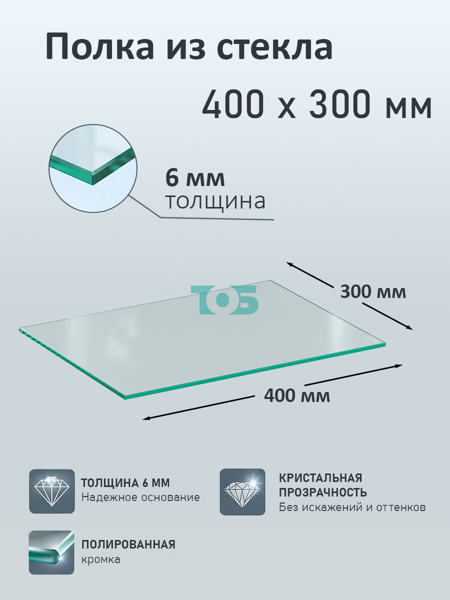 Полка из стекла 6мм 400х300мм