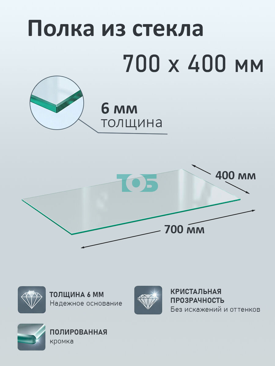 Полка из стекла 6мм 700х400мм
