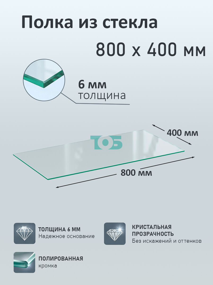 Полка из стекла 6мм 800х400мм